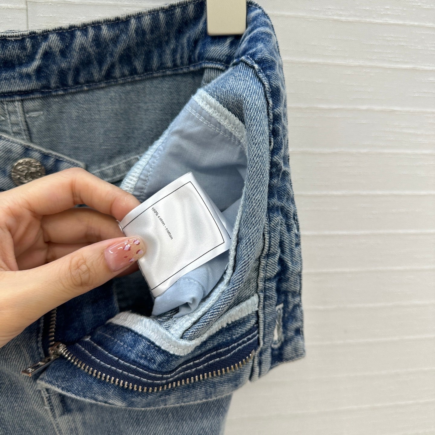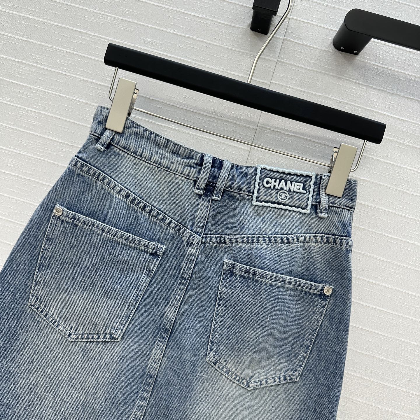 CC 25 Embroidered Short Skirt Blue Denim Cotton