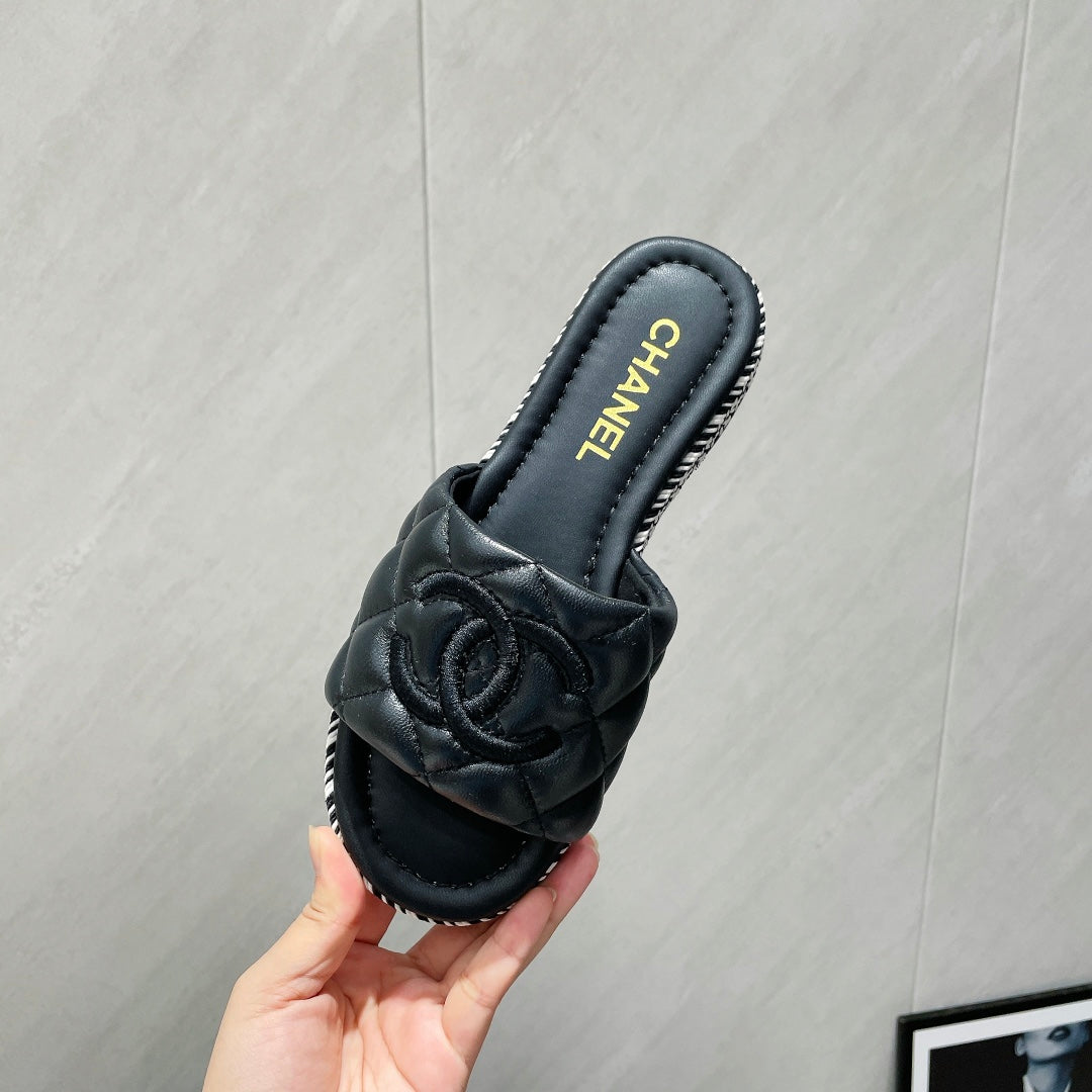 CC 25 Flip Flop Sandals Black Calfskin Espadrilles