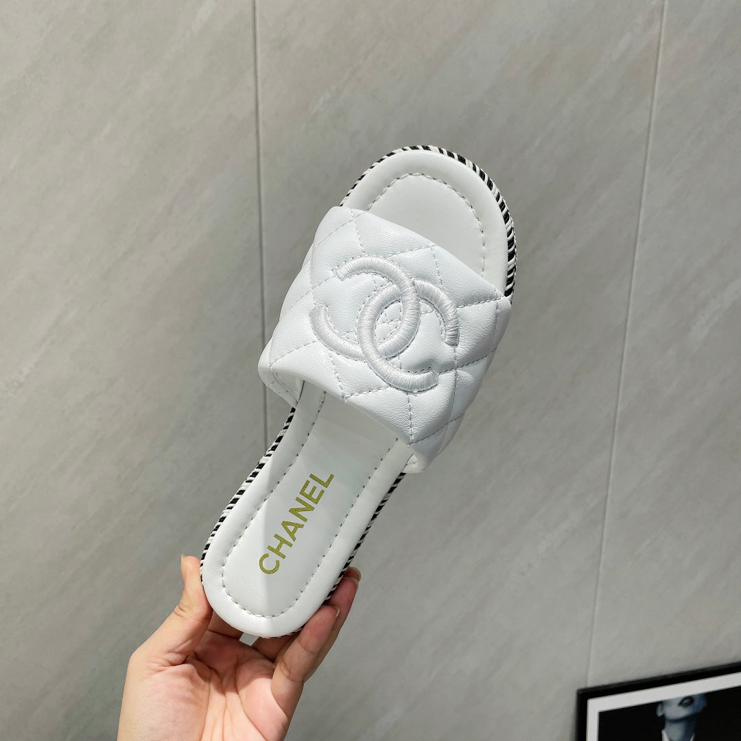 CC 25 Flip Flop Sandals White Calfskin Espadrilles