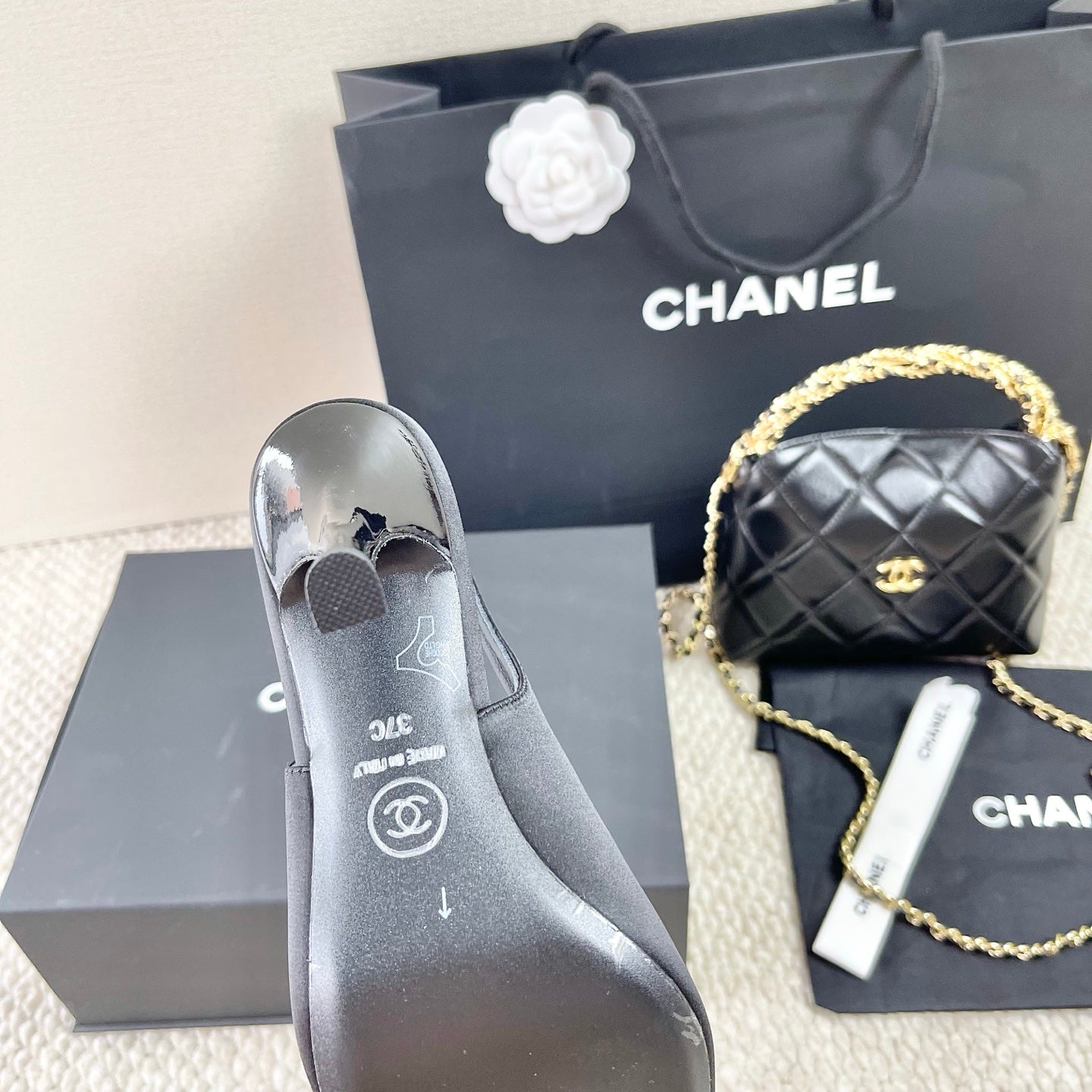 CC 25 Slingback heel Black Silk and Sheepskin 268921