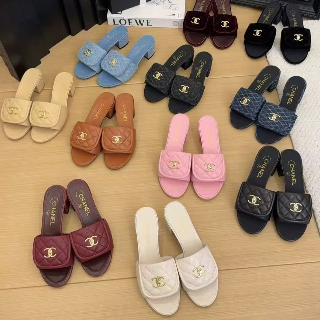 CC 25P Ballet Flat Dark Blue Tweed Black Calfskin