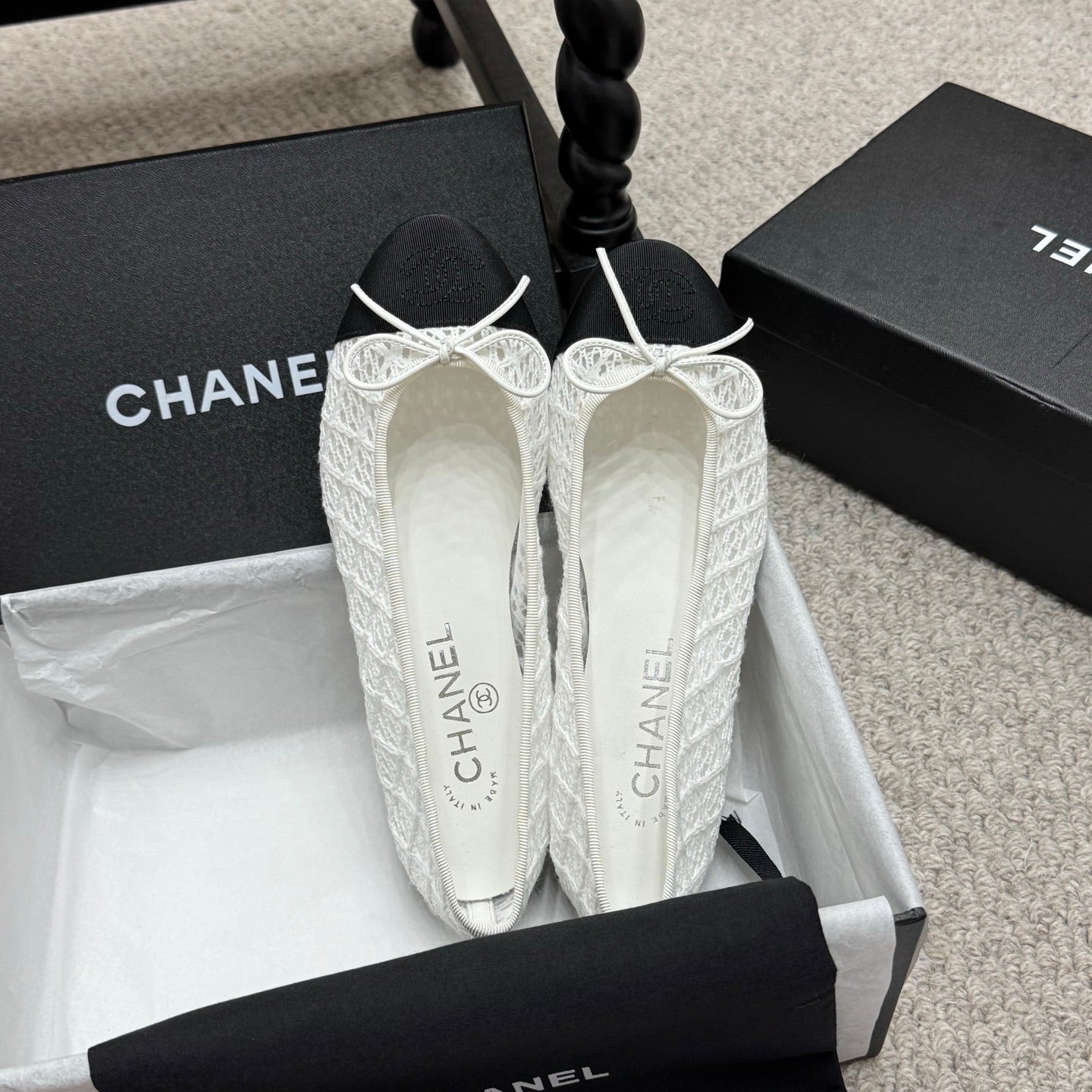 CC 25P Ballet Flat White Beige Quilted Calfskin