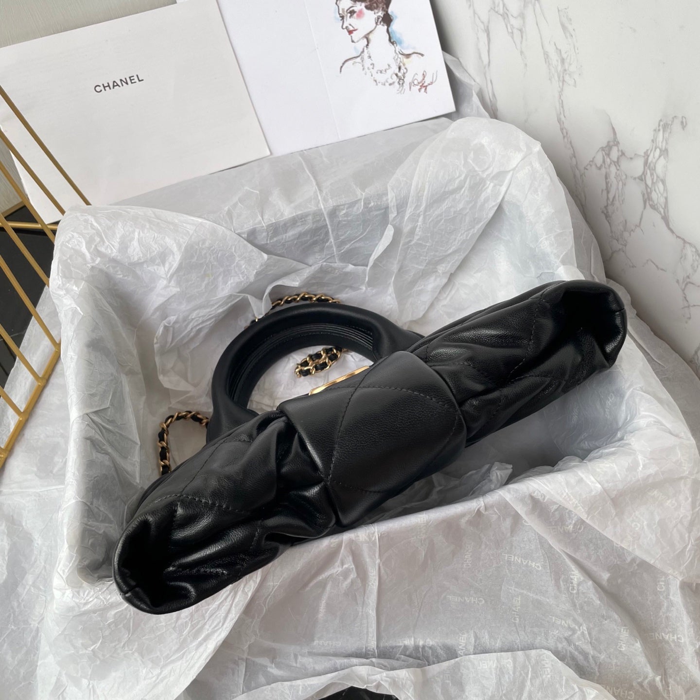 CC 25C Vanity Top Handle 21cm Black Grained Calfskin Light Gold Hardware