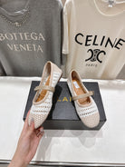 ALAIA MARY JANE FLATS white mix beige woven calfskin pattent