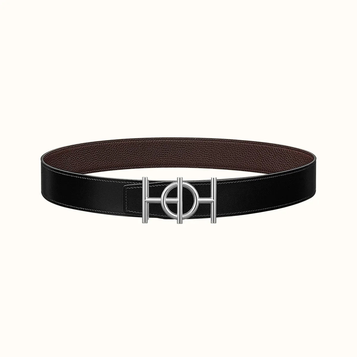 TUBE H BELT BUCKLE & REVERSIBLE BLACK AND CINNAMON BROWN LEATHER STRAP 38MM SILVER HARDWARE