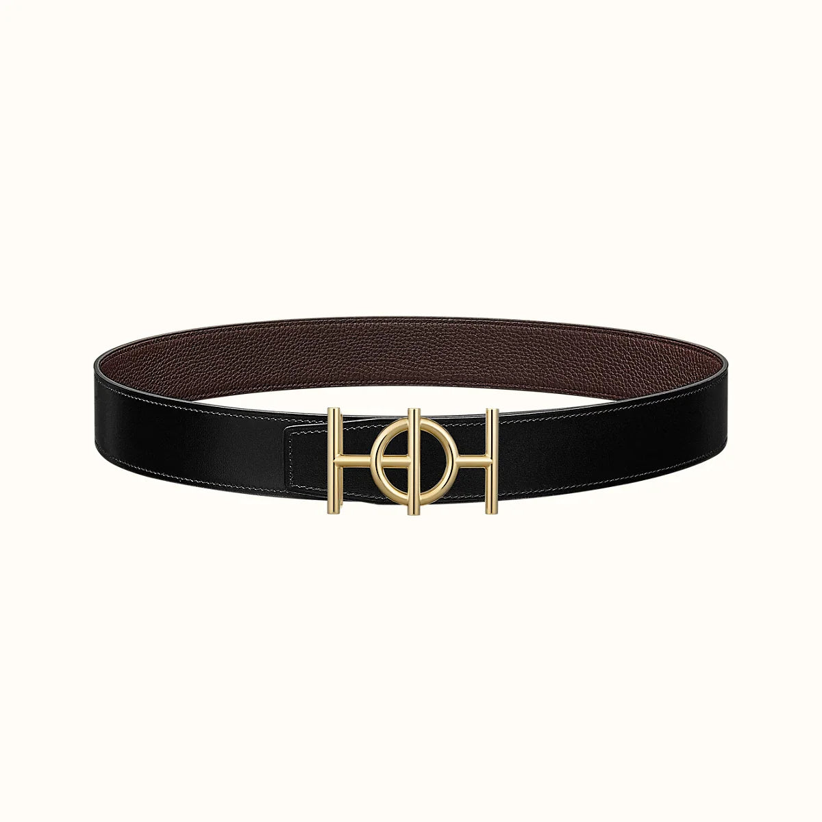 TUBE H BELT BUCKLE & REVERSIBLE BLACK AND CINNAMON BROWN LEATHER STRAP 38MM GOLD HARDWARE