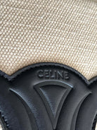 SMALL BUCKET CUIR TRIOMPHE 24CM IN STRIPED TEXTILE AND BLACK CALFSKIN