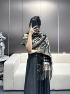 REVERSIBLE EKD SCARF 210 CM IN BLACK MIX CAMEL BEIGE CASHMERE 410182