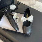 BALLET FLAT BLACK LAMBSKIN WITH WHITE BOW