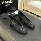 CC 25P Ballet Heel 50mm Black Raffia Large Logo