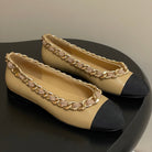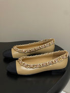 Chanel 25A Ballet Flats Big Chain Double C Beige Black Sheepskin 393818