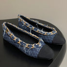 Chanel 25A Ballet Flats Big Chain Double C Dark Blue Denim Sheepskin 393816