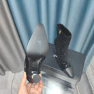 CC Ankle Boots Black Beaded Fabric And Cowhide