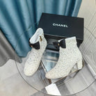 CC Ankle Boots White Bow Tweed Sequin Beaded Fabric