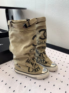 CC High-Top Canvas Boots Beige Black Denim Fabric 938050
