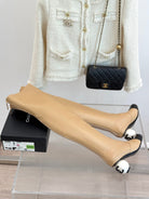 Chanel 25 Double C Giant Pearl Heel Long Boot Beige Black Sheepskin 465411