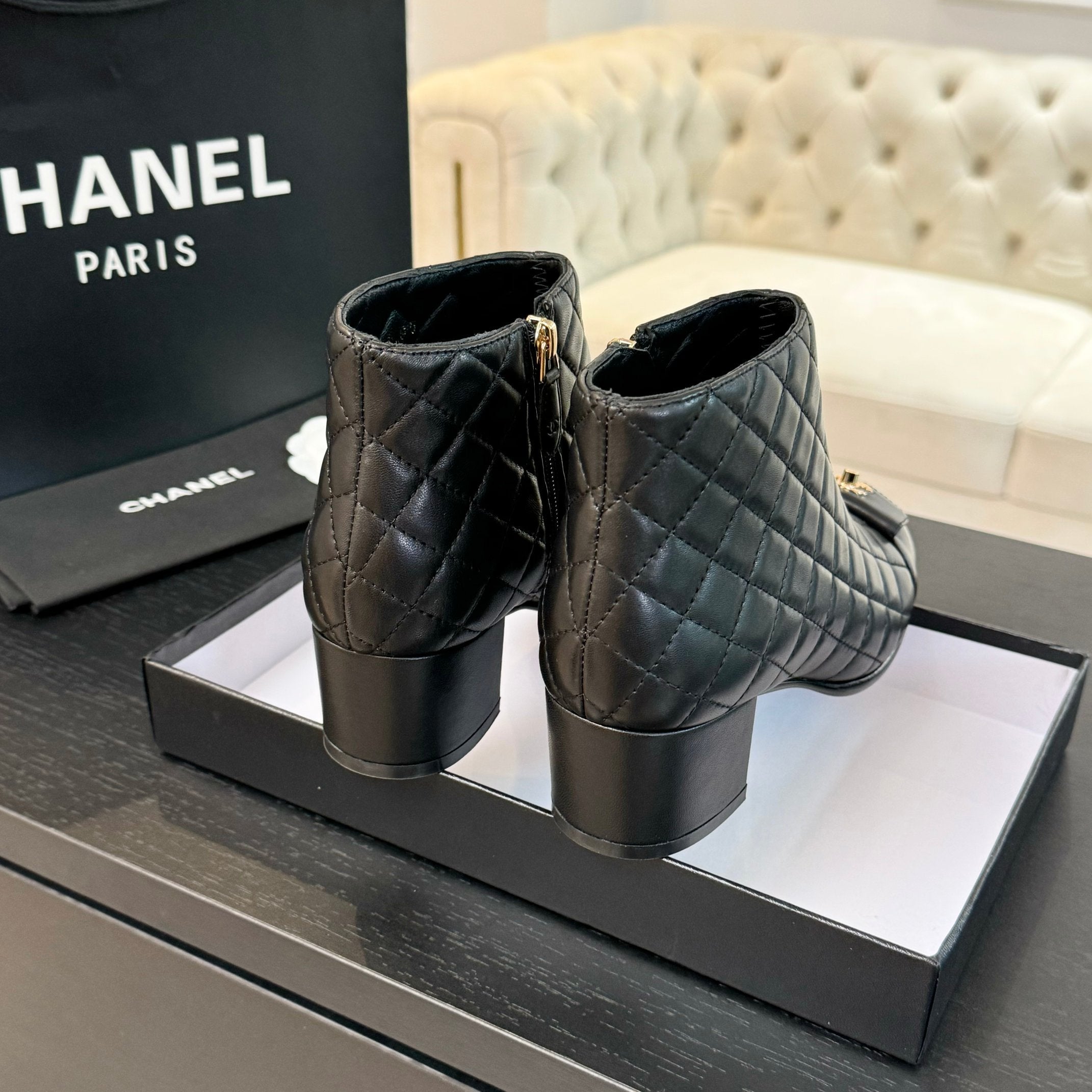 CC Short Boots Black Quilted Calfskin And Lambskin