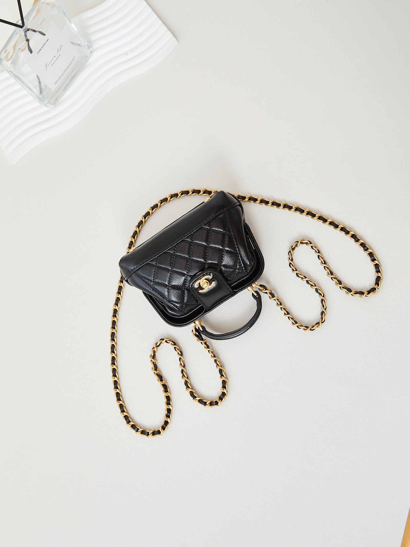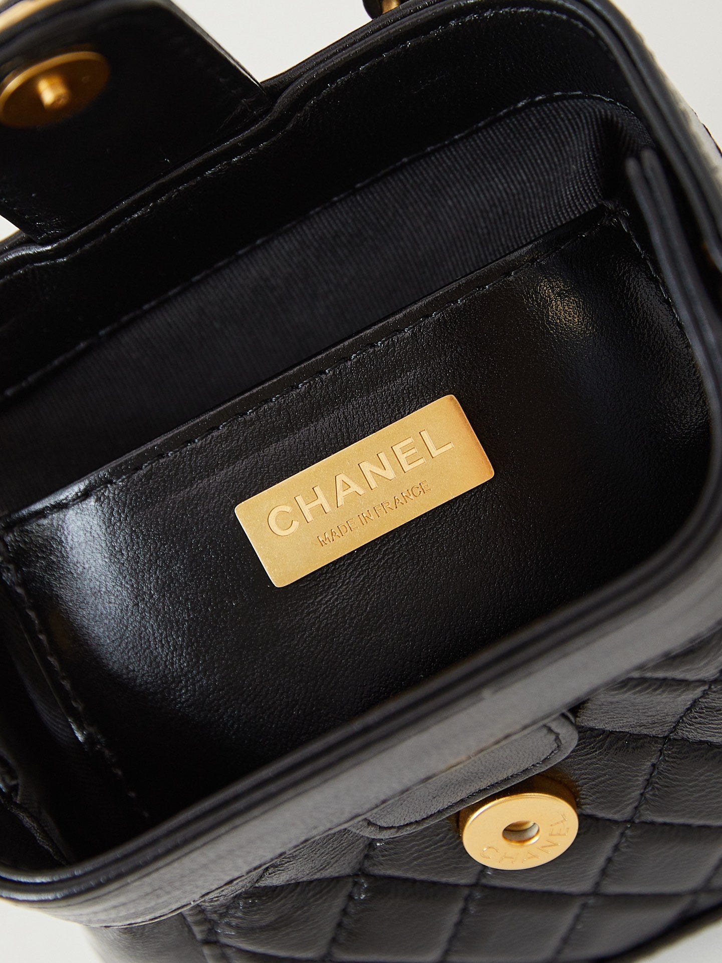 CC 24A Mini Top Handle 13cm Black Wax Leather Gold Hardware 238455