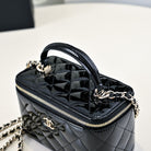 CC 24P Vanity Top Handle 16.5cm Black Patent Calfskin Light Gold Hardware