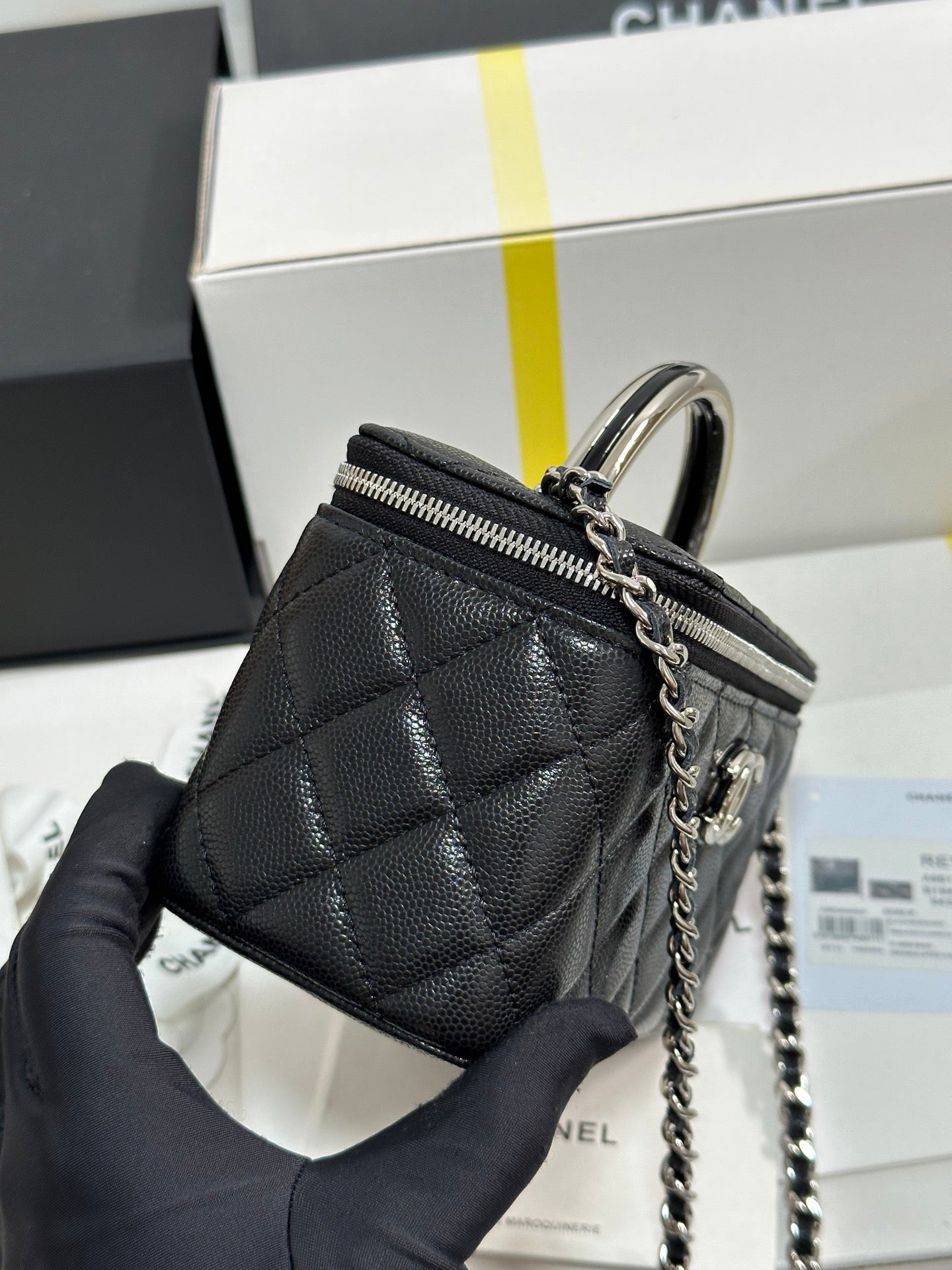 CC 25P Vanity Case 17cm Black Leather Silver Hardware 243469