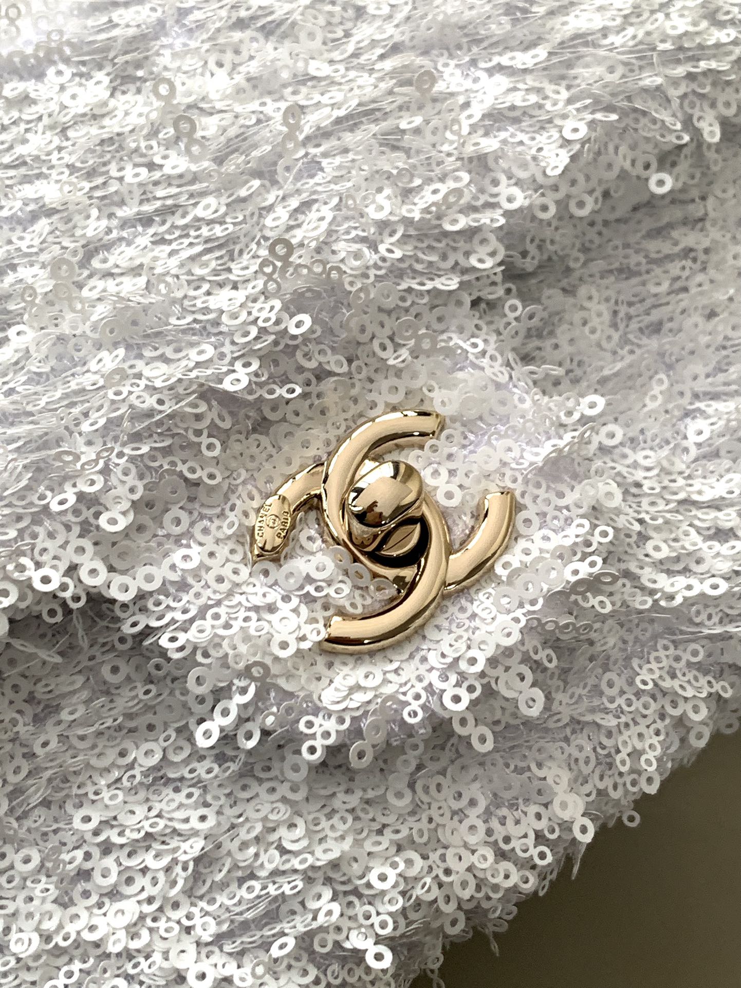 CC 25S Flap Bag 20cm White Fringed Sequin Calfskin