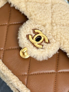 Flap Bag Mini 18cm Beige Brown Sherling Lambskin Gold Hardware