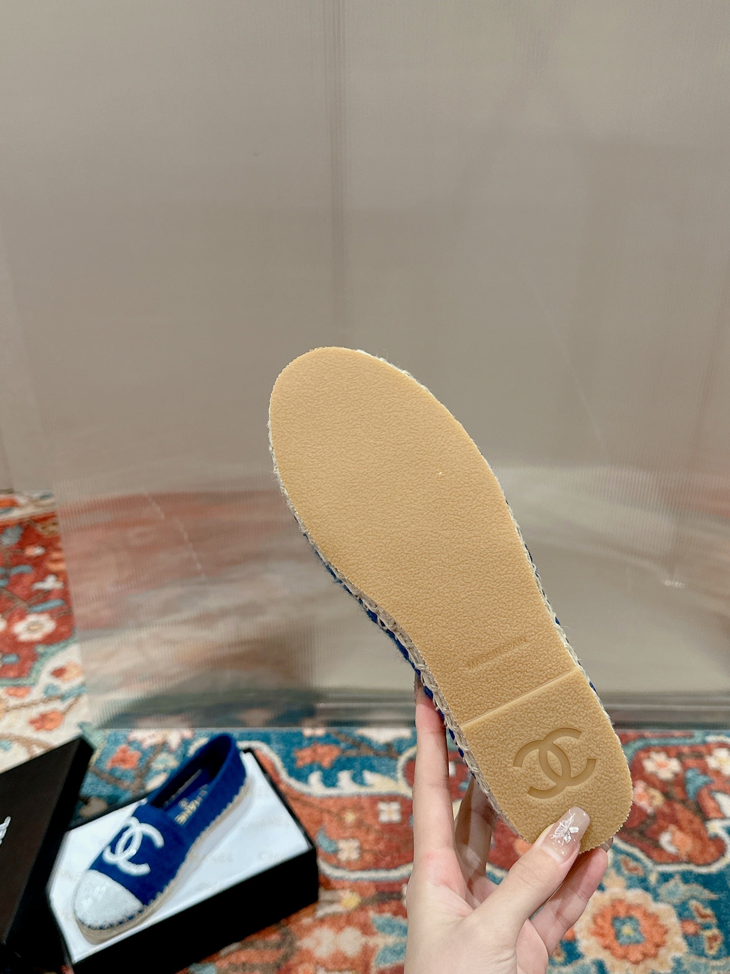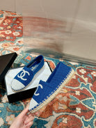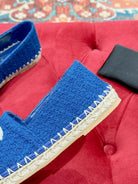cc espadrilles blue cotton tweed white sequin