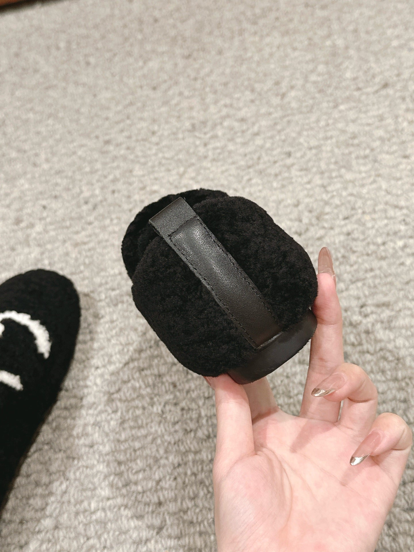 CC LOAFERS IN BLACK FLEECE WITH WHITE LOGO