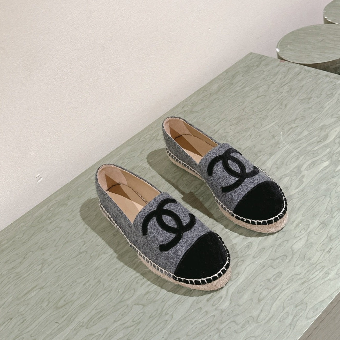 espadrilles grey tweed beige calfskin