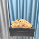 CC Crisscross Slippers Light Brown Pattern Fleece Wool