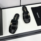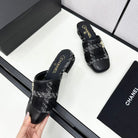 CC FLAT MULE IN BLACK WOOL TWEED AND CALFSKIN GOLD HARDWARE