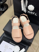 CC HIGH WEDGE SANDALS IN LIGHT PINK LAMBSKIN