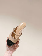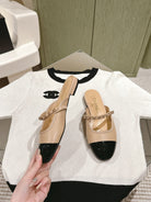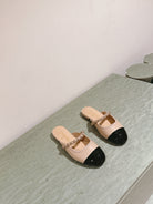 cc mule leather chain beige calfskin black patent calfskin