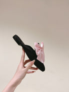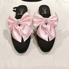 CC MULE WITH SILK LIGHT PINK BOW AND BLACK LAMBSKIN