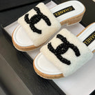 CC Slippers White Wool And Calfskin