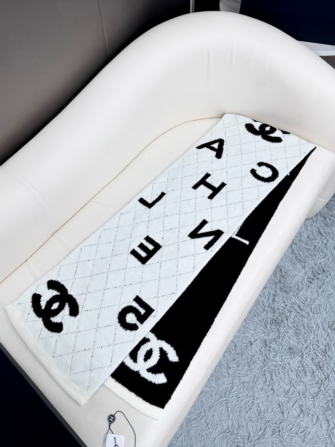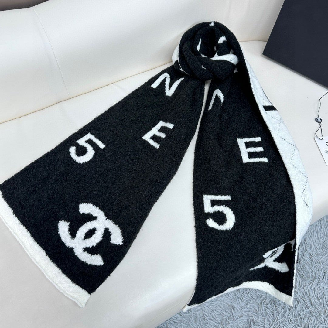 CC Scarf 180 CM In Black Mix White Cashmere And Wool Mix Silk 407255