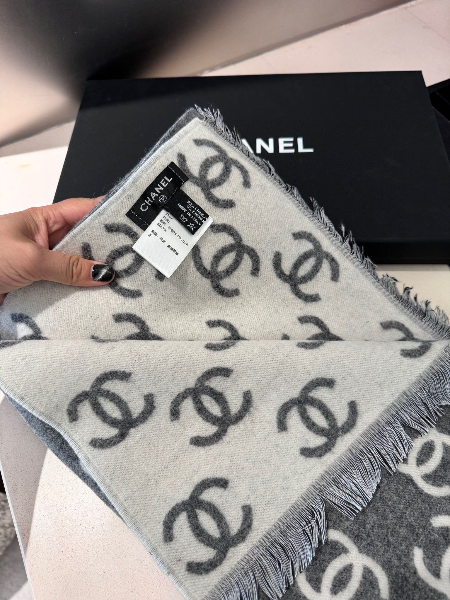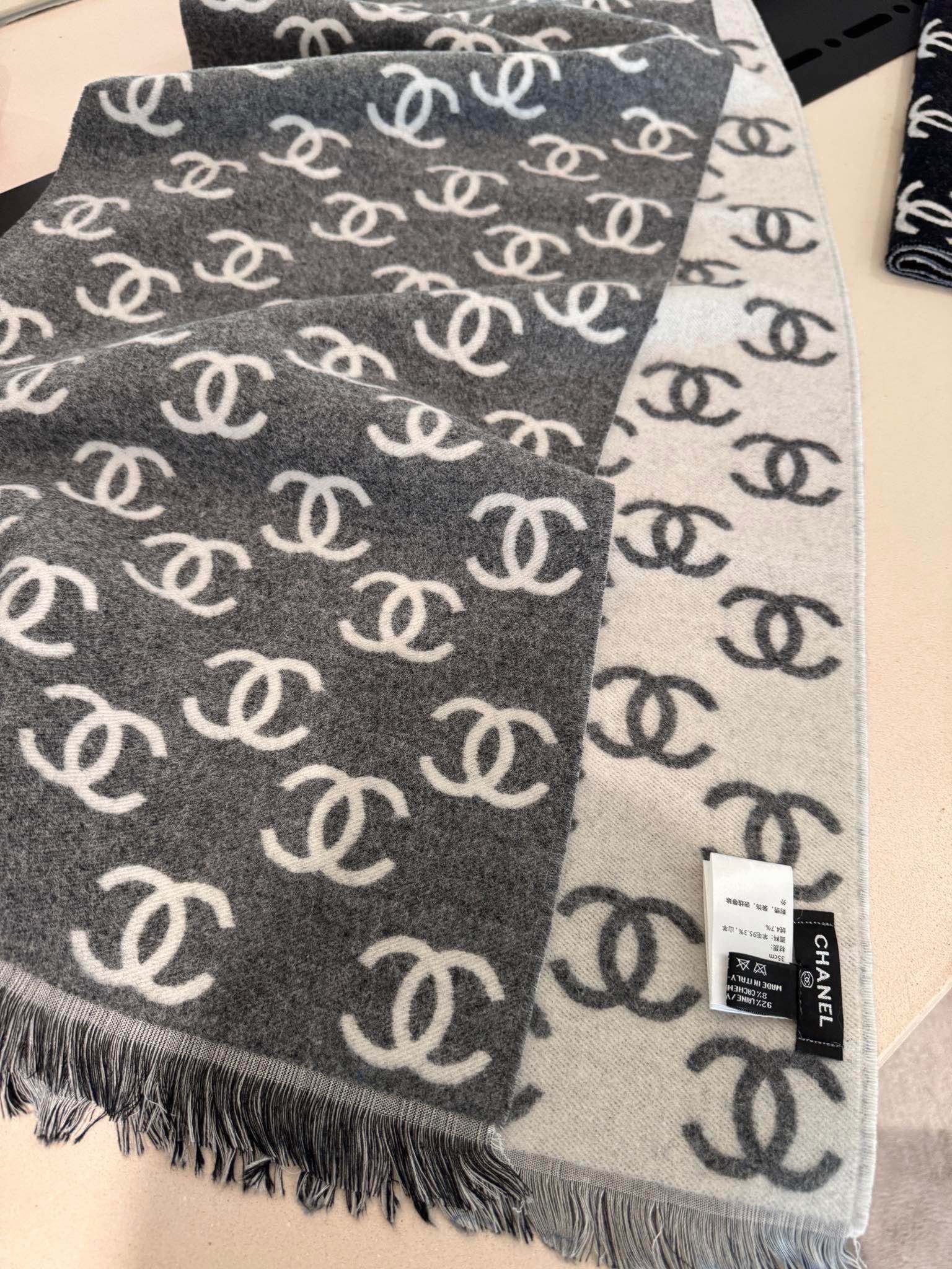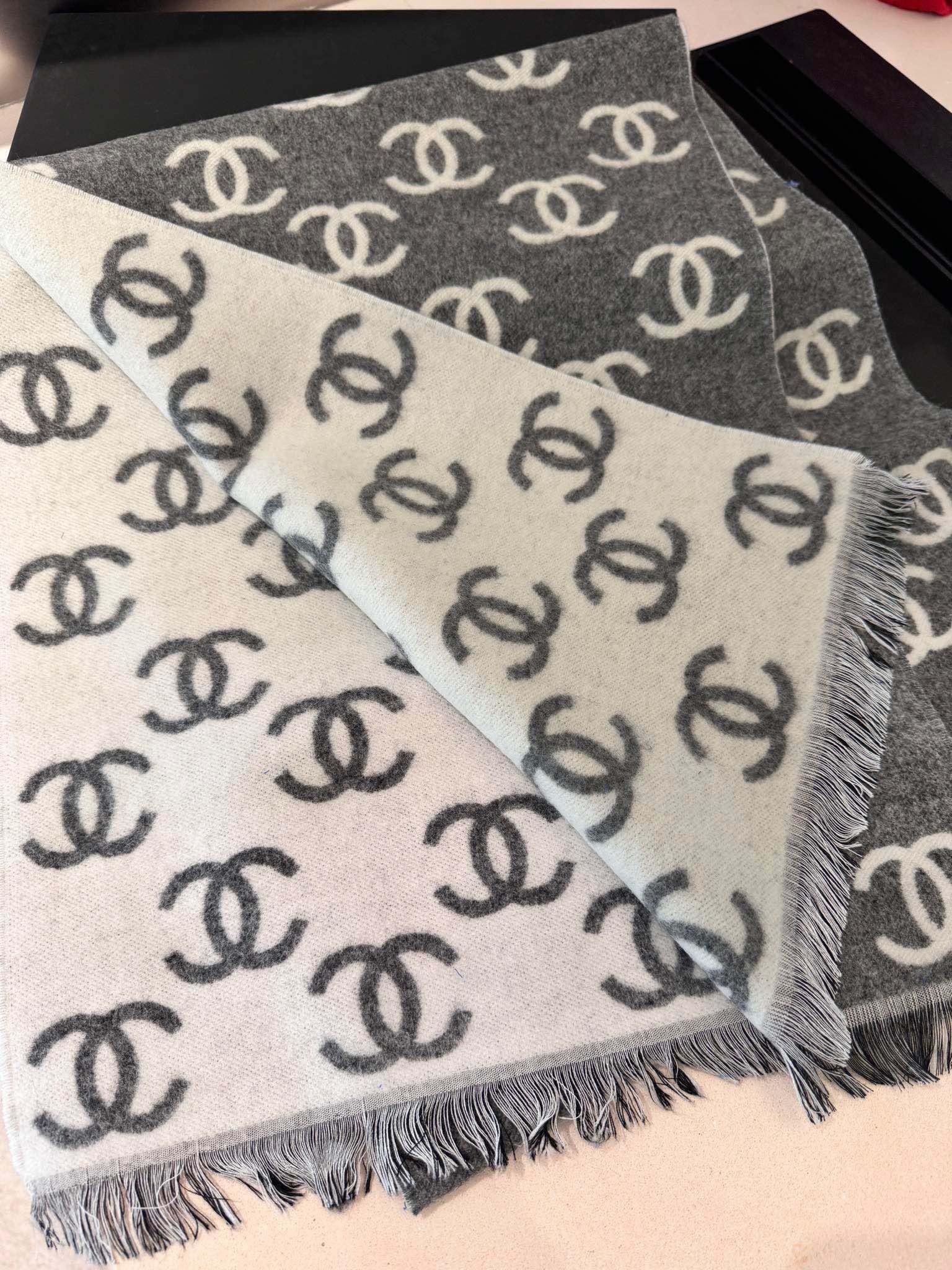 CC Scarf 180 CM In Dark Grey Mix Light Grey Print Logo Wool And Cashmere 359268
