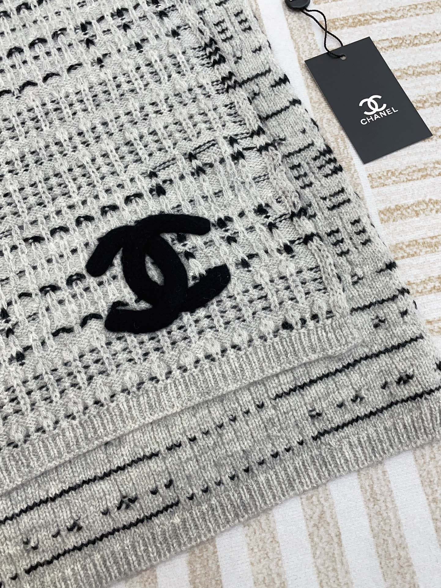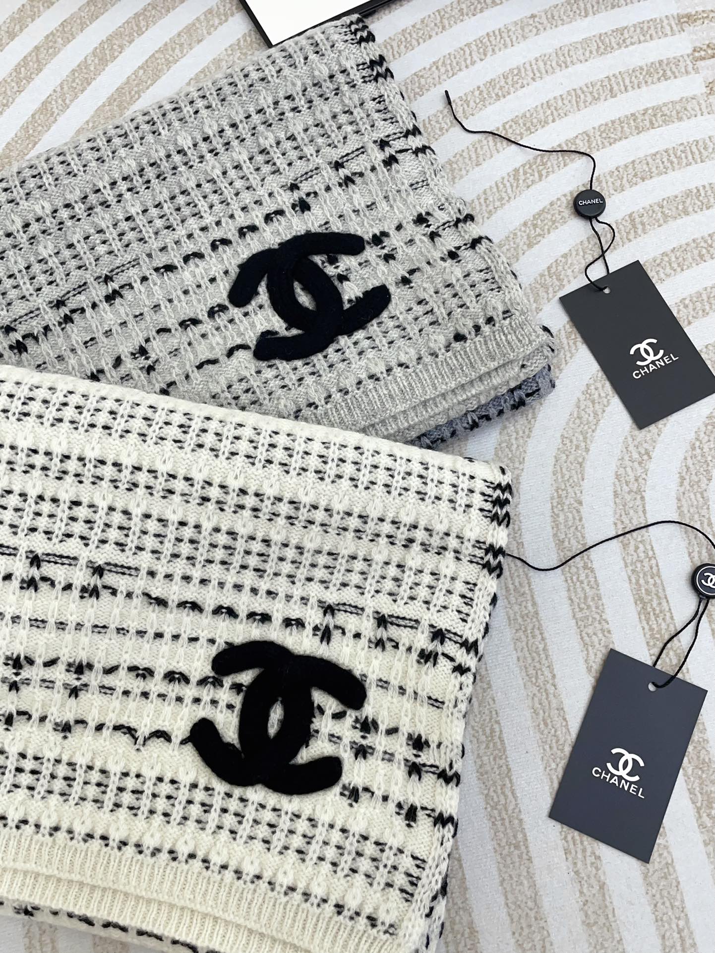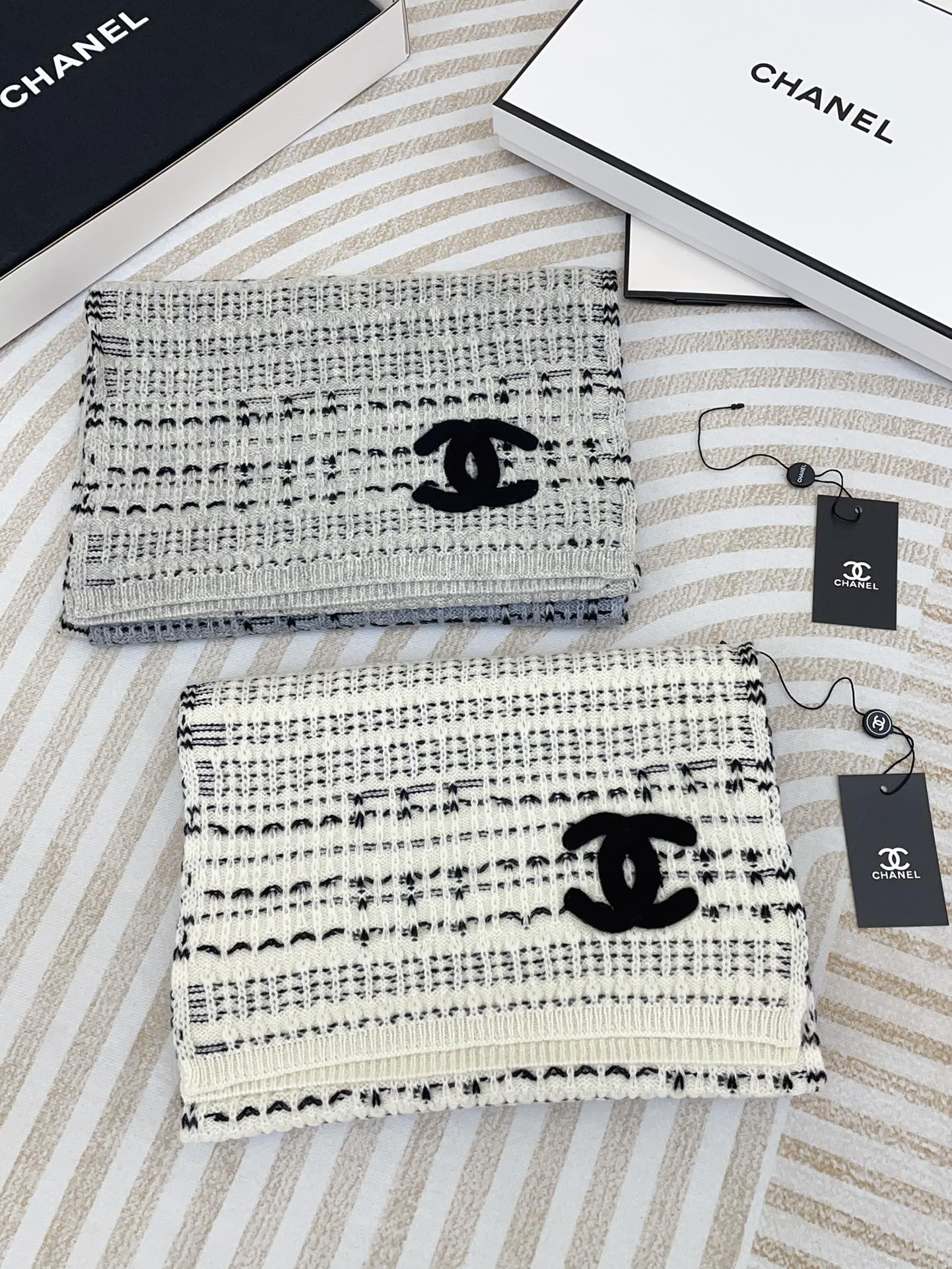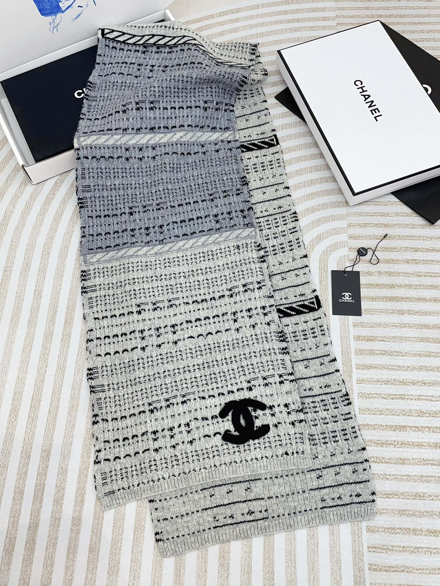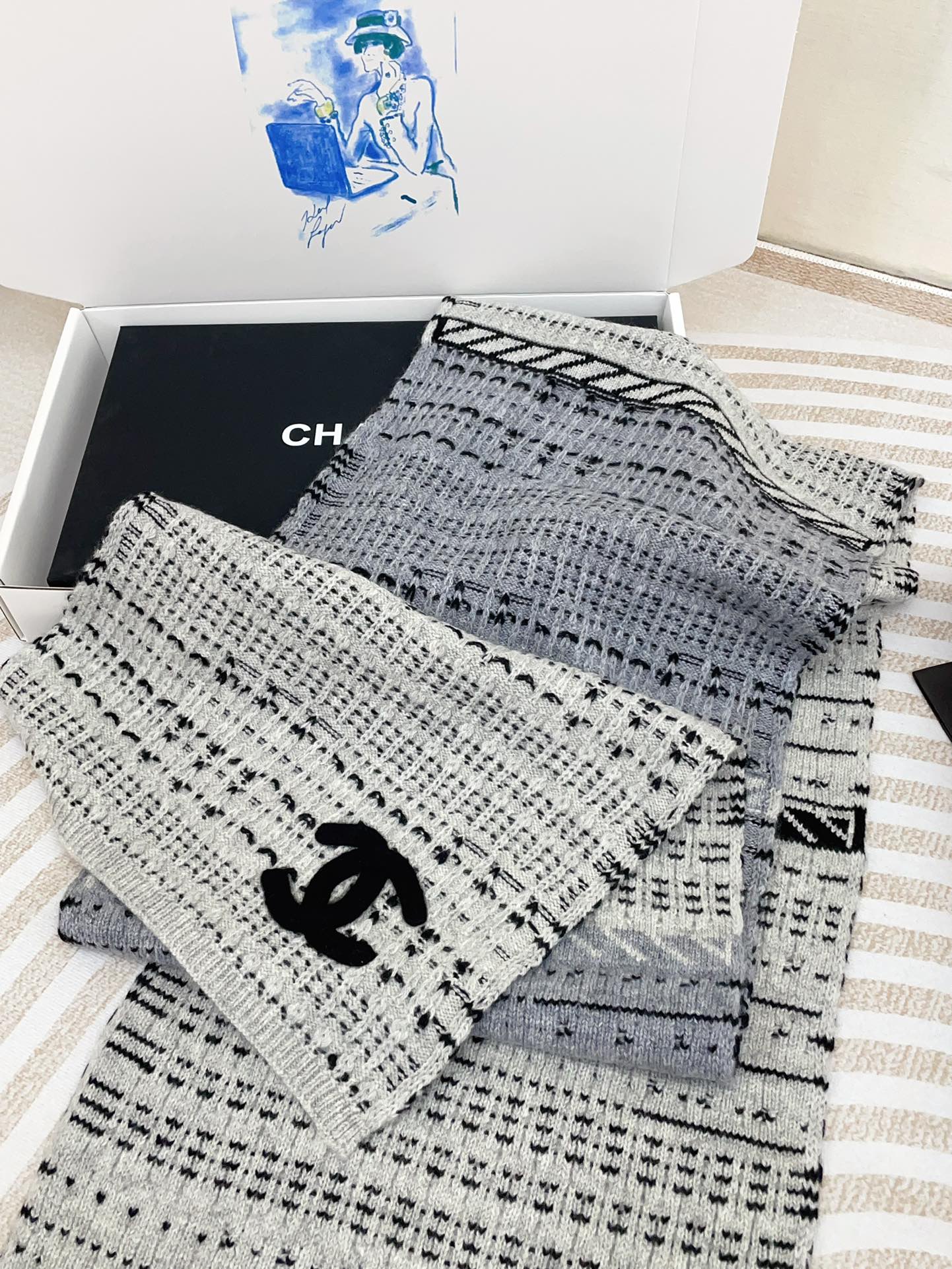 CC Scarf 180 CM In White Grey Mix Black Wool 388185