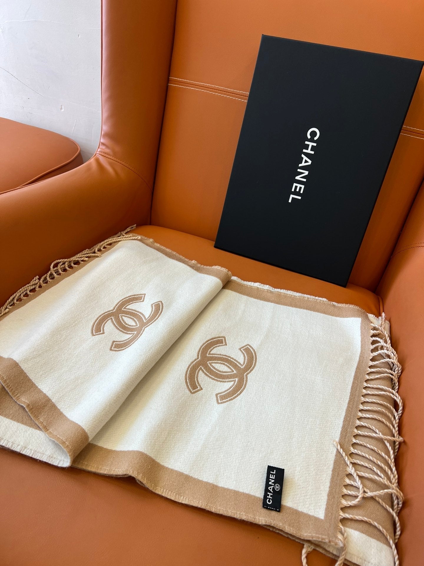 CC Scarf 184 CM In White Mix Brown Wool Fleece 385536