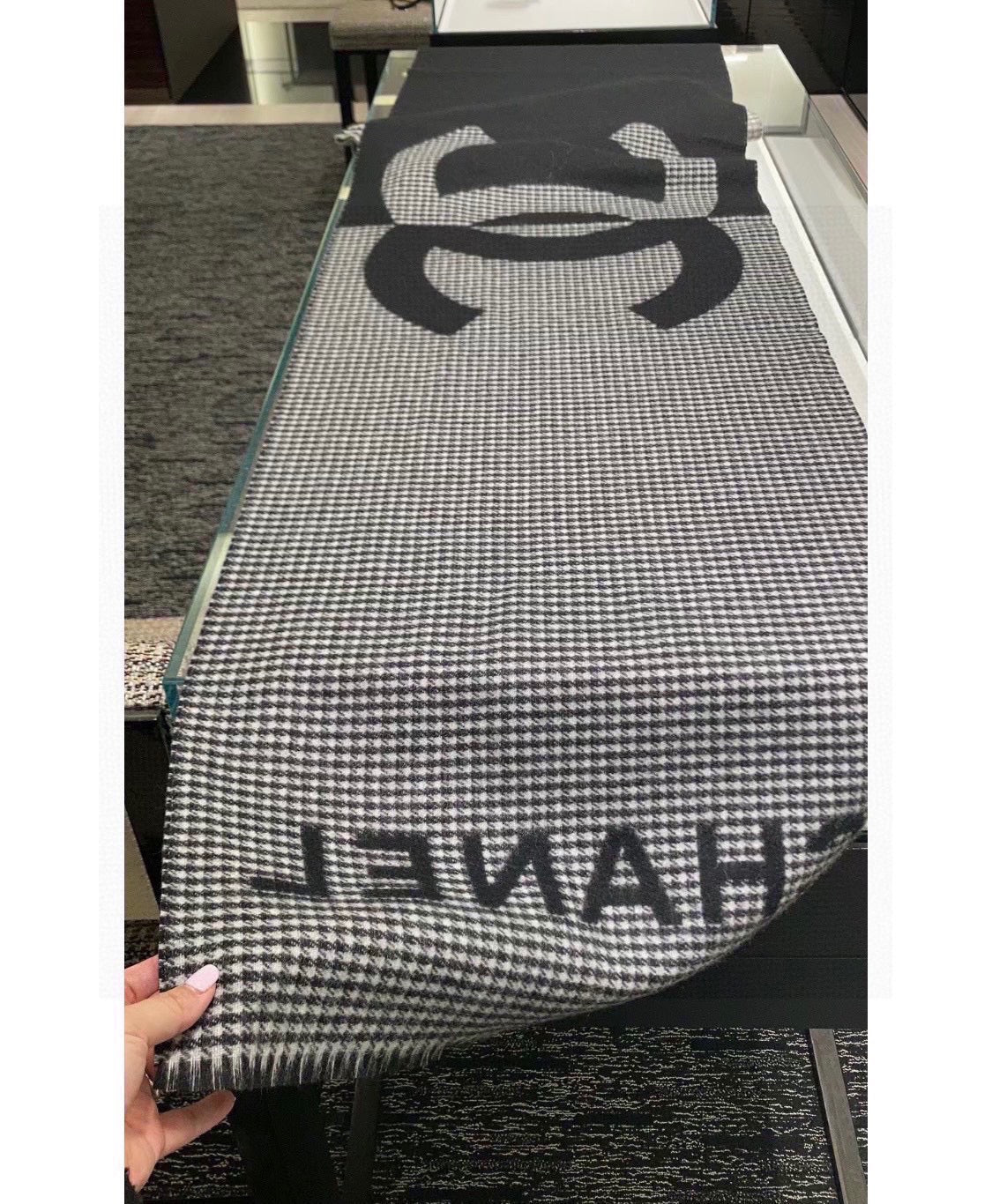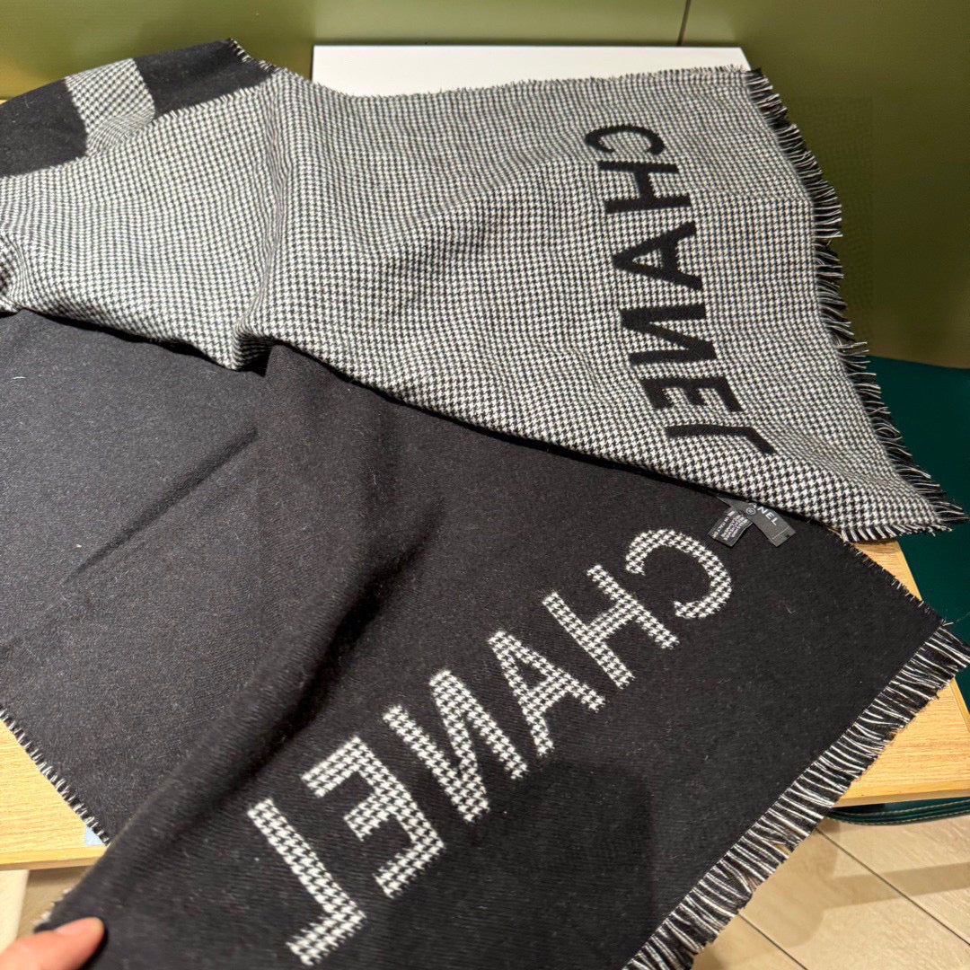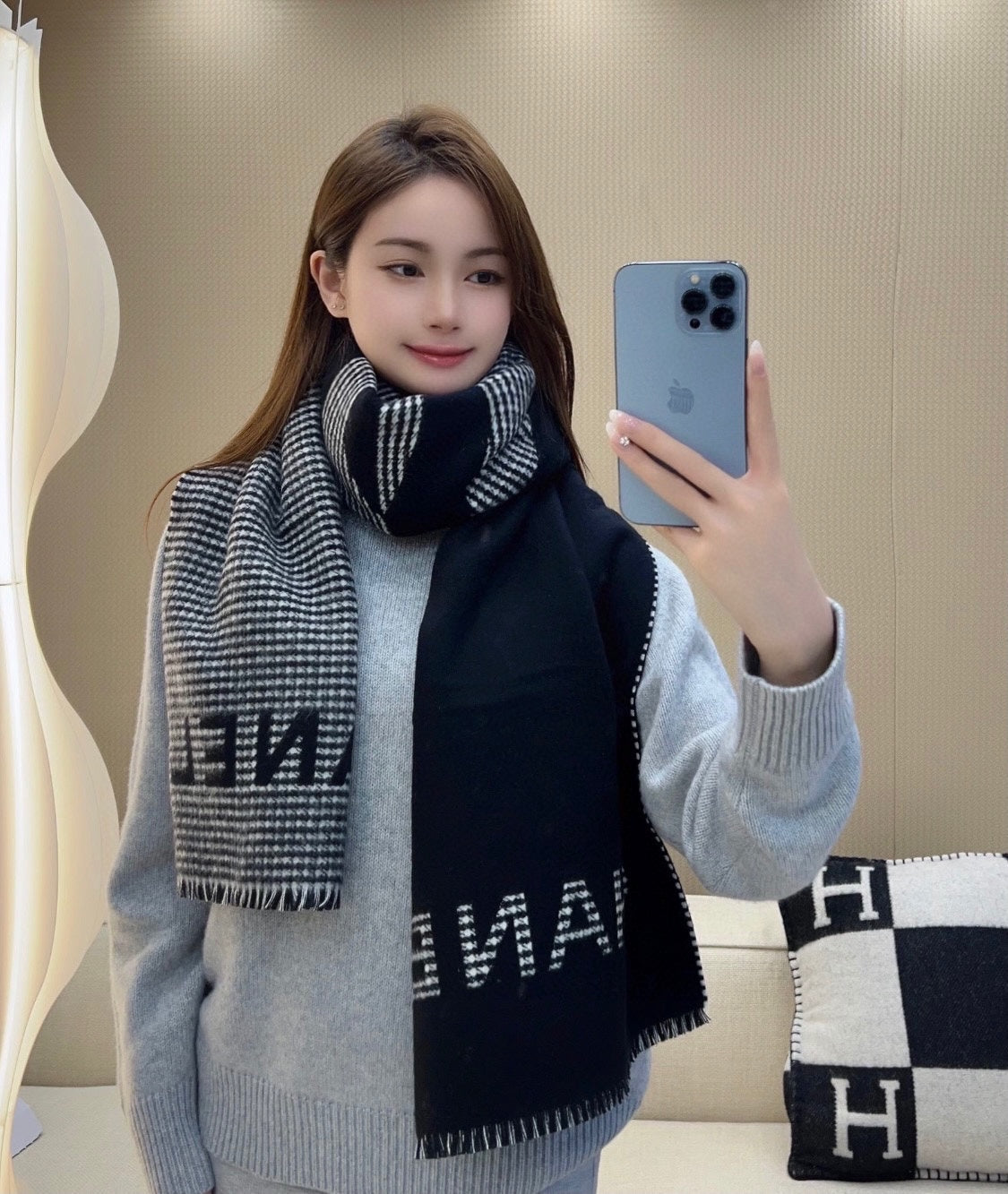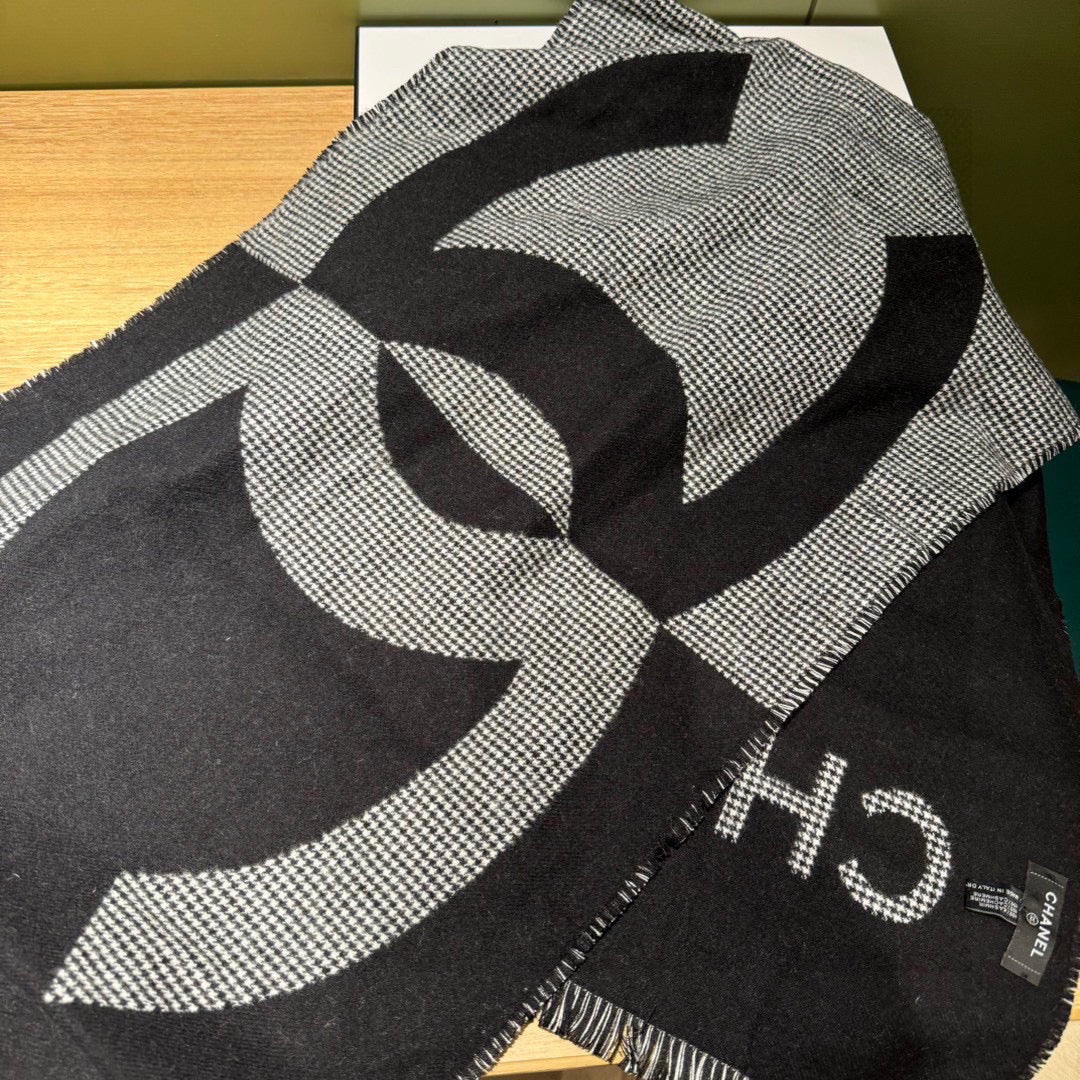 CC Scarf 185 CM In Black Mix Grey Serrated Shape Cashmere 422861