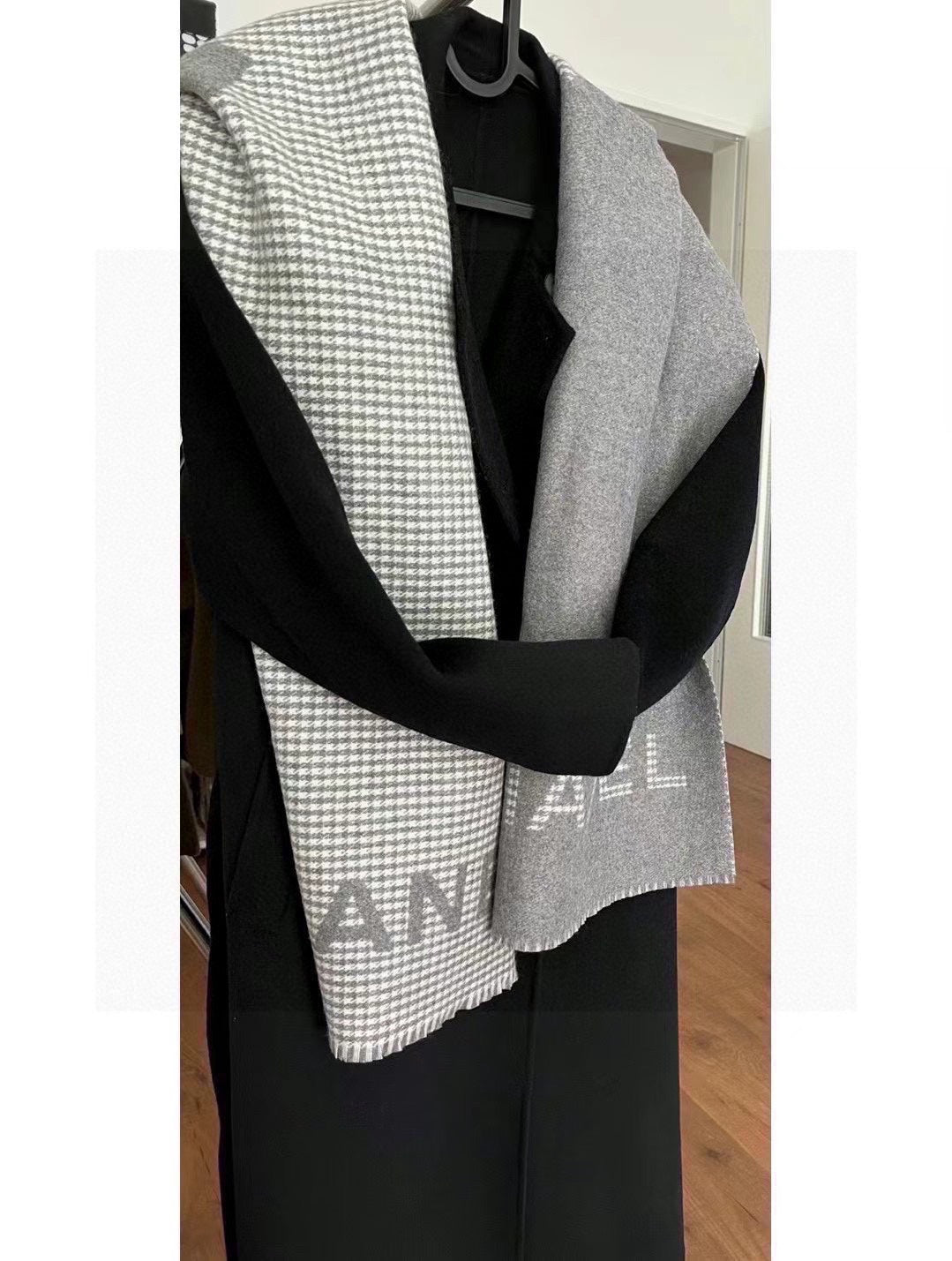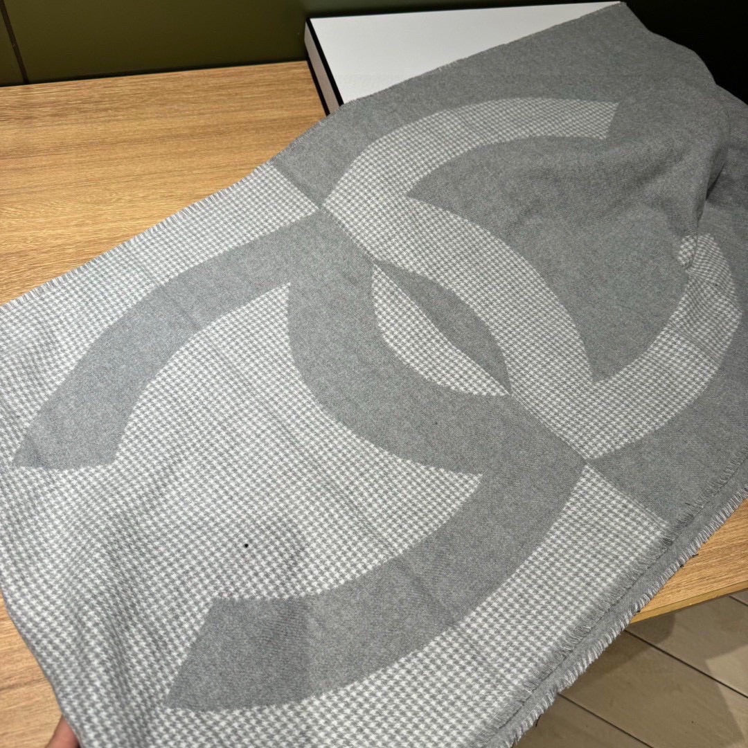 CC Scarf 185 CM In Grey Serrated Shape Cashmere 422860