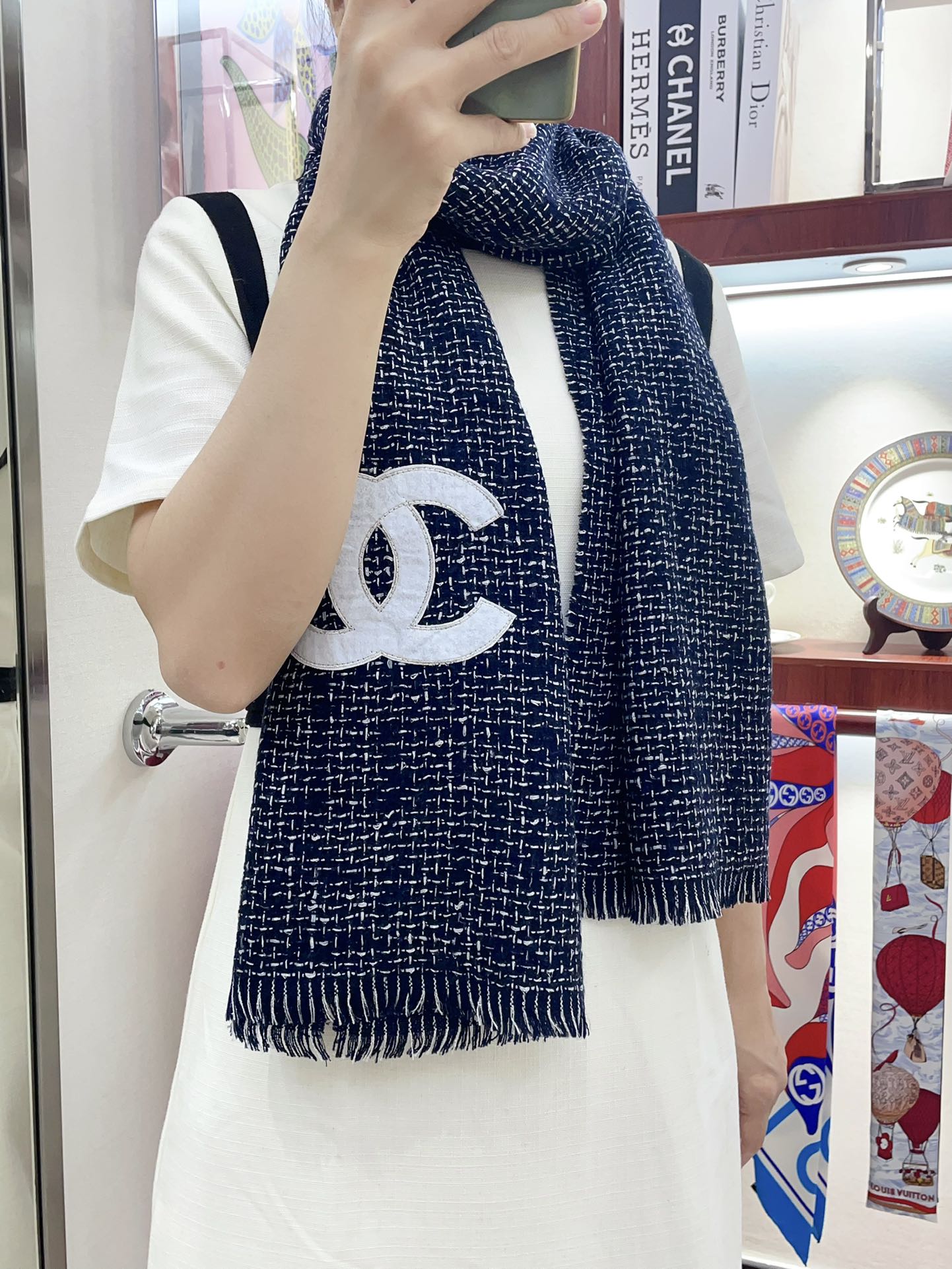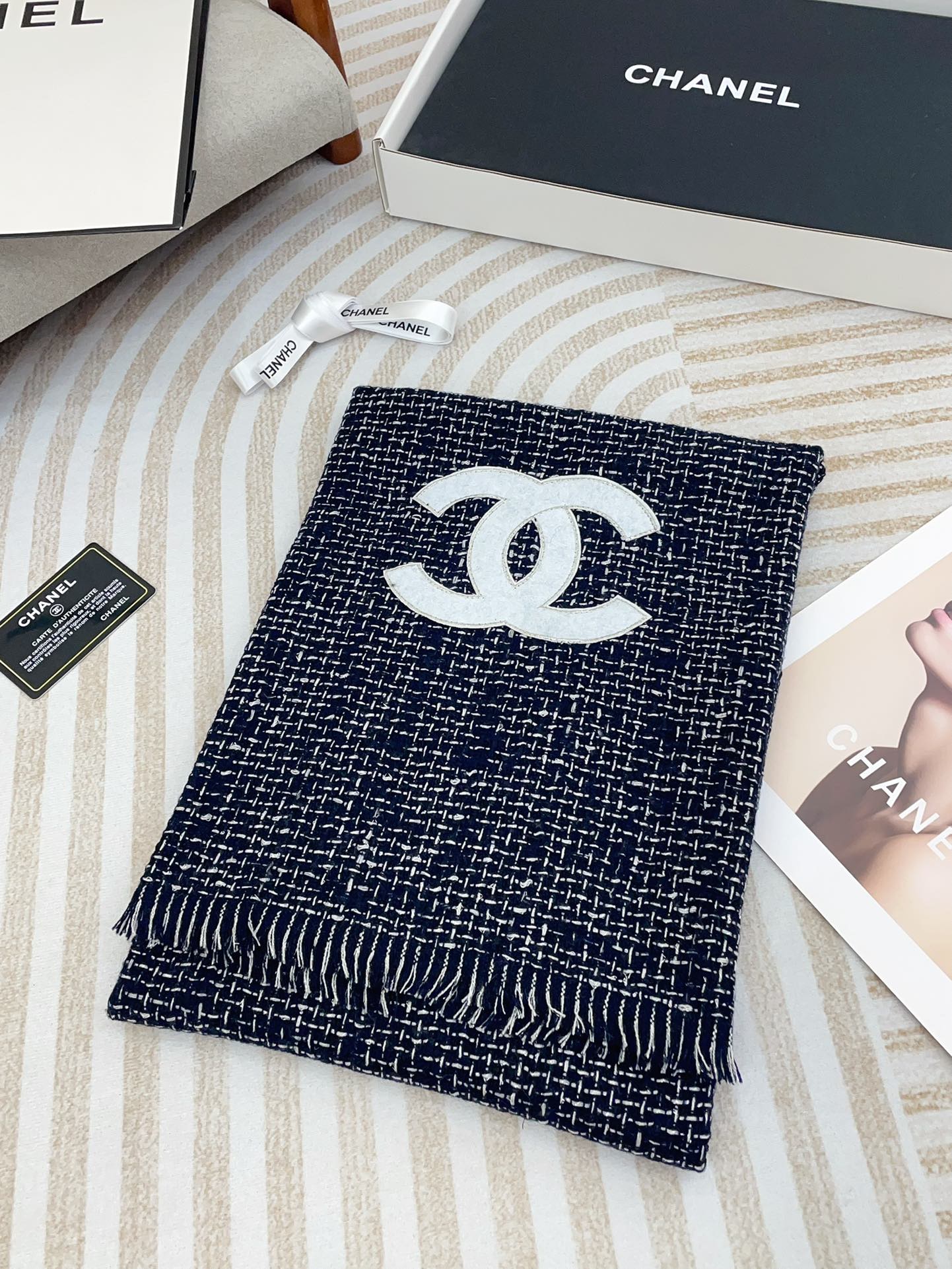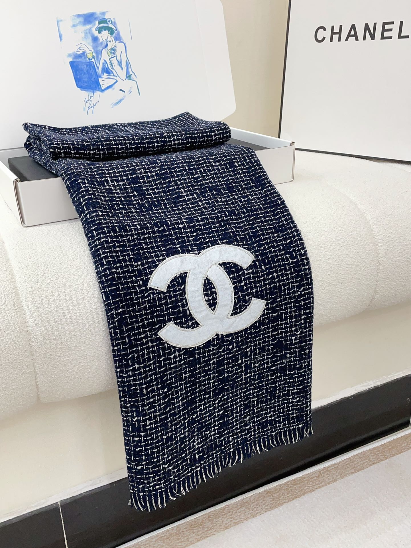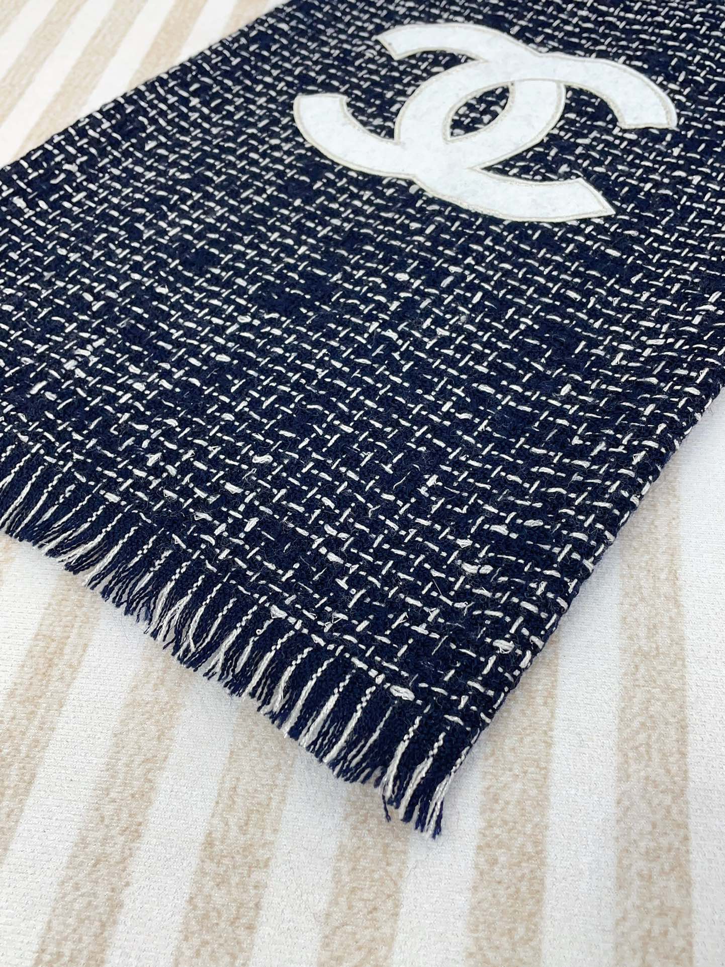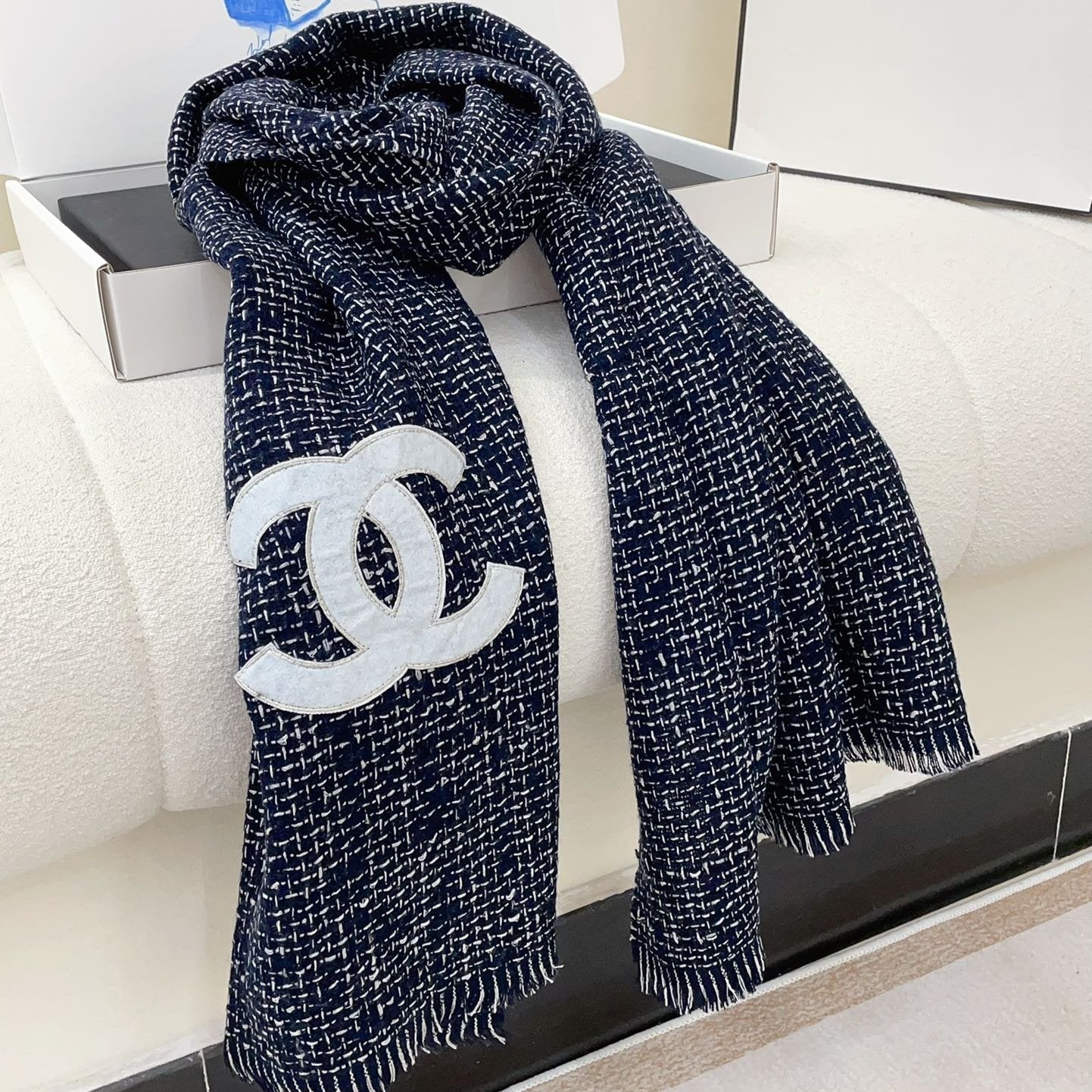 CC Scarf 190 CM In Charcoal Blue Mix White Cashmere 421408