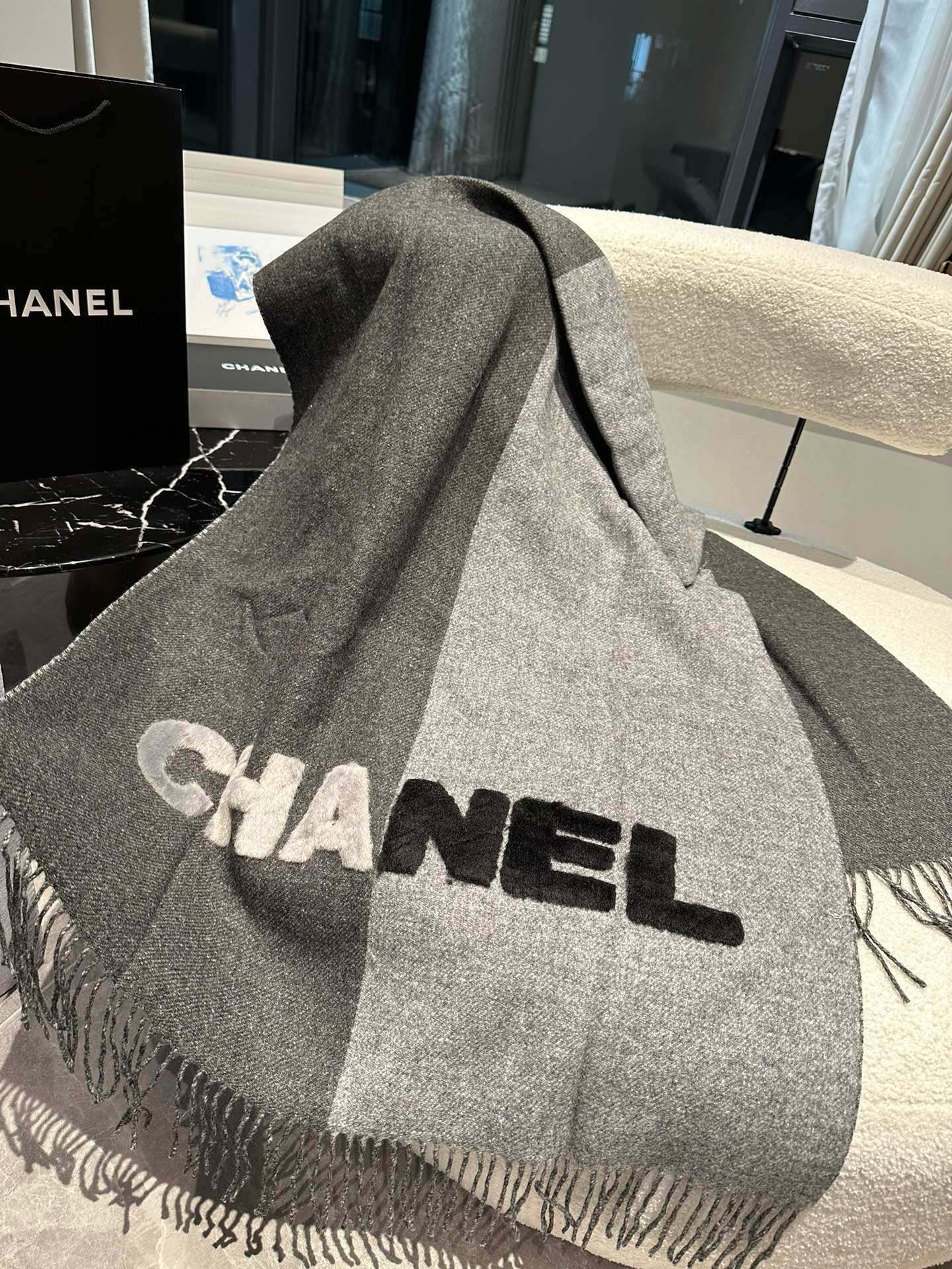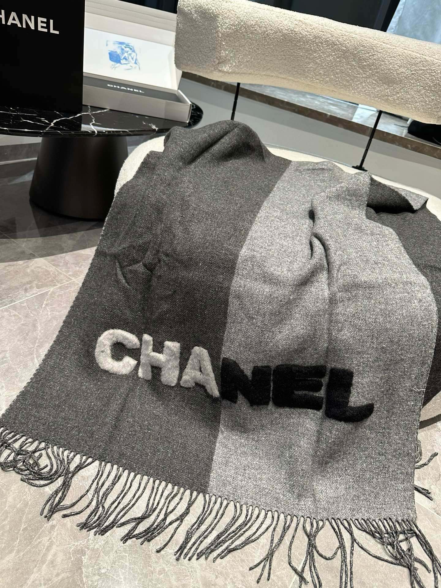 CC Scarf 200 CM In Dark Grey Mix Light Grey Fleece Wool 405153