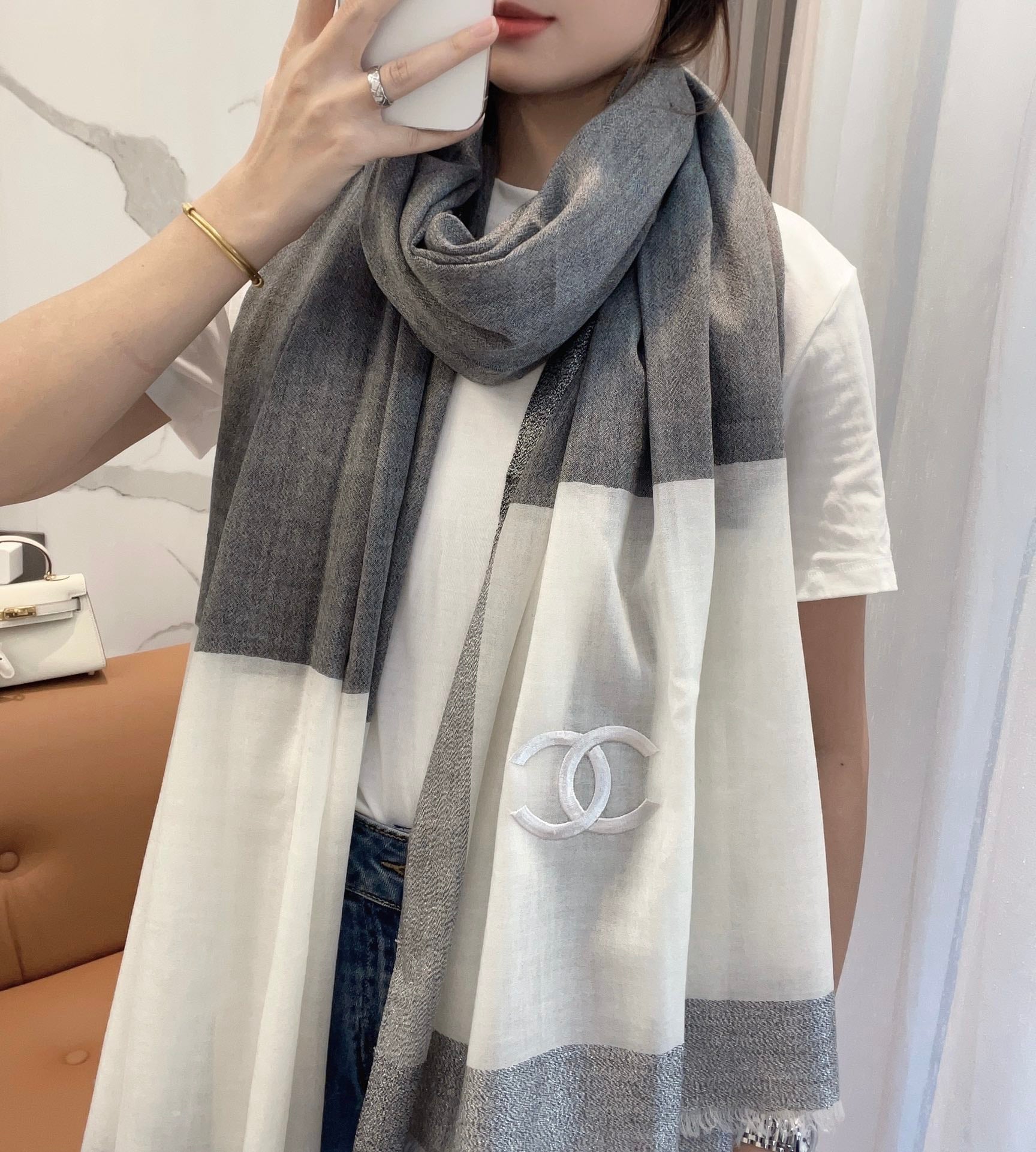 CC Scarf 200 CM In Grey Mix White Cashmere Silk 416880