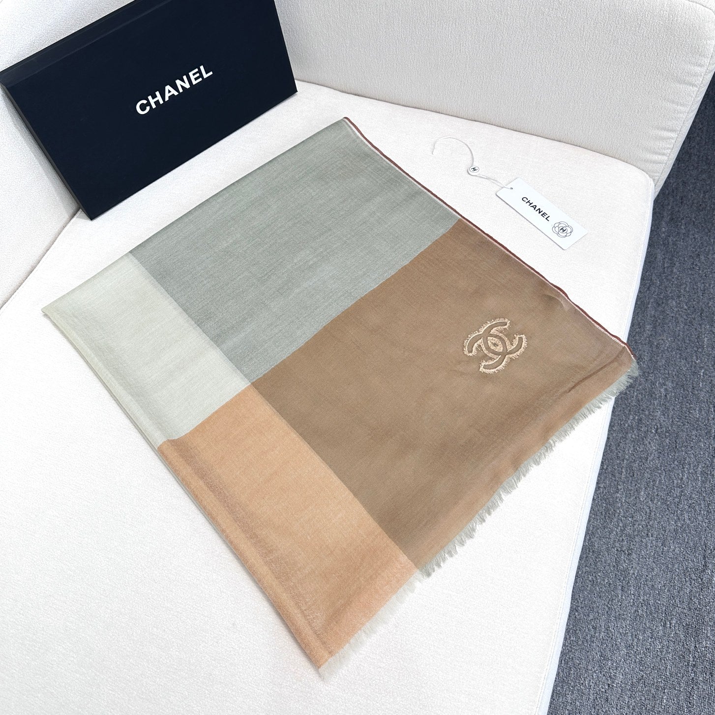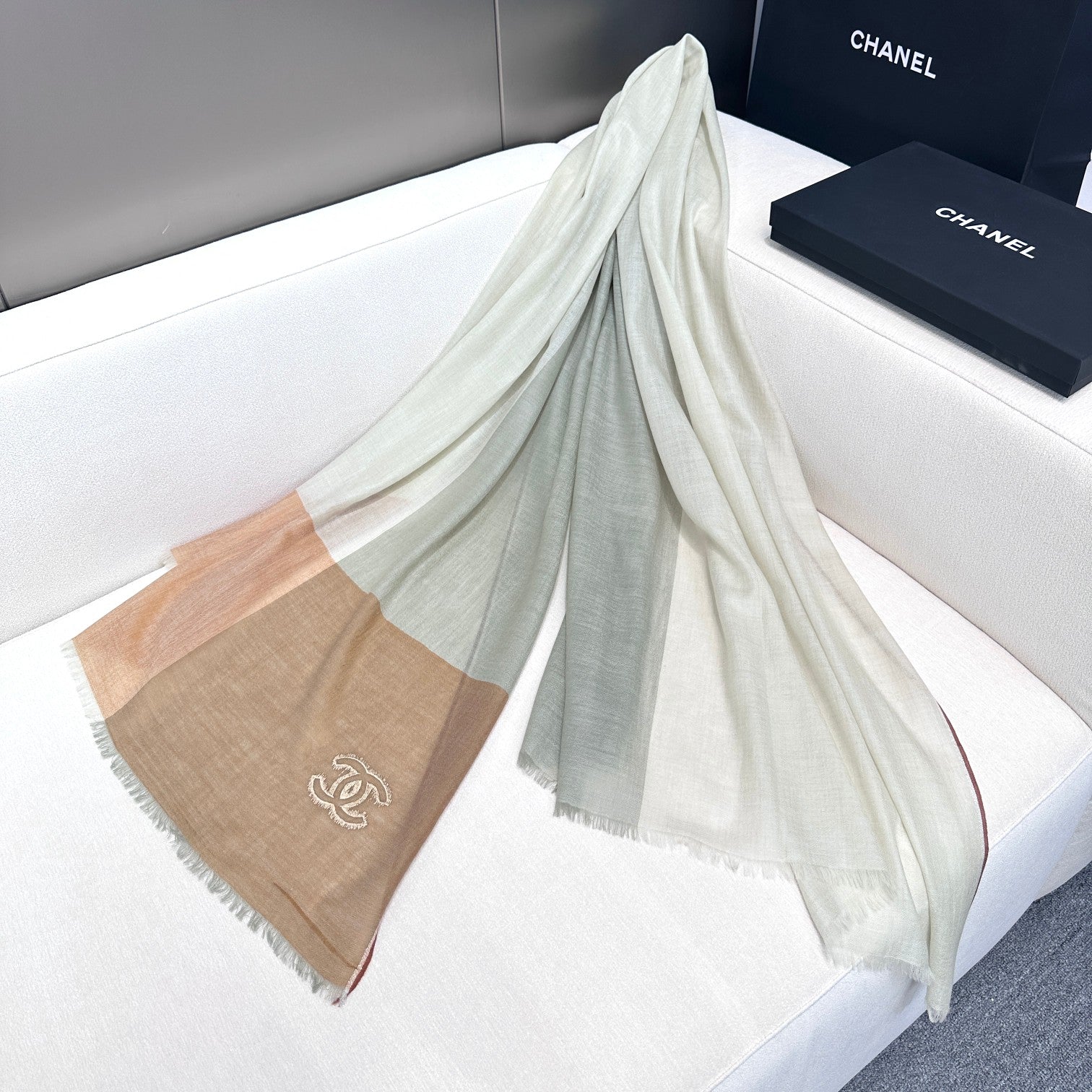 CC Scarf 200 CM In Light Grey Mix Light Brown Beige Linen Fabric 418195