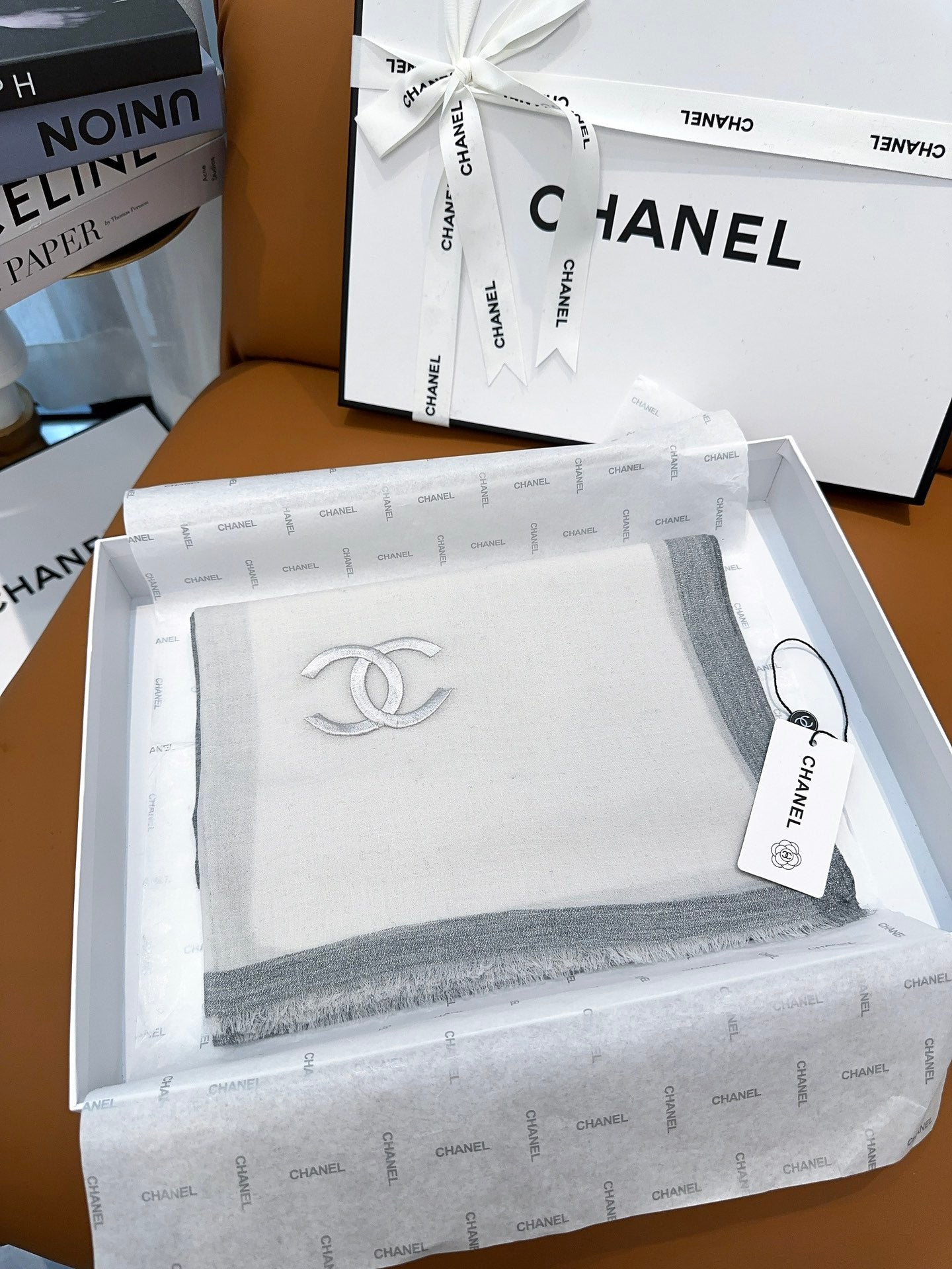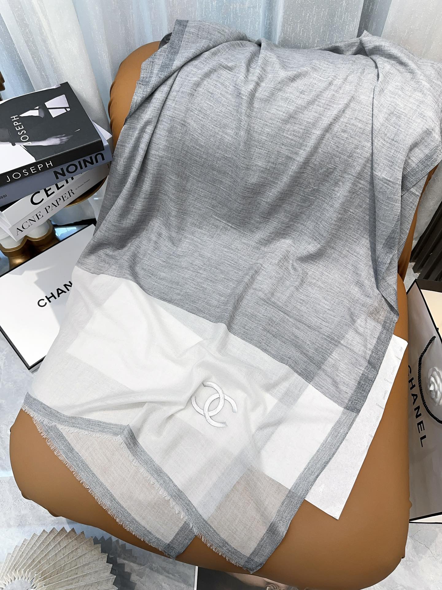 CC Scarf 200 CM In Light Grey Mix White Cashmere Silk 385379