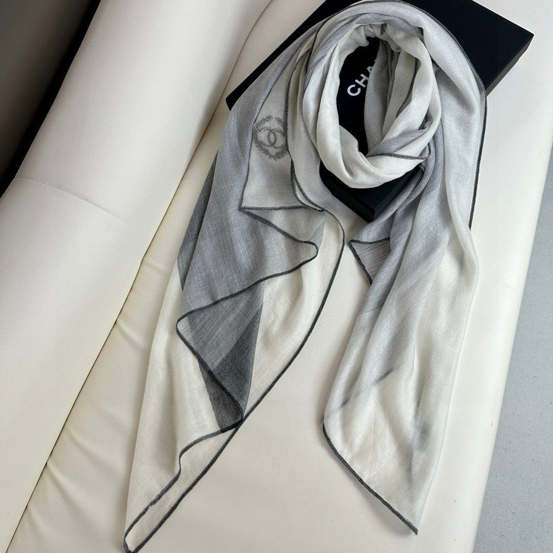 CC Scarf 200 CM In Light Grey Mix White Dark Grey Cashmere Silk 396448