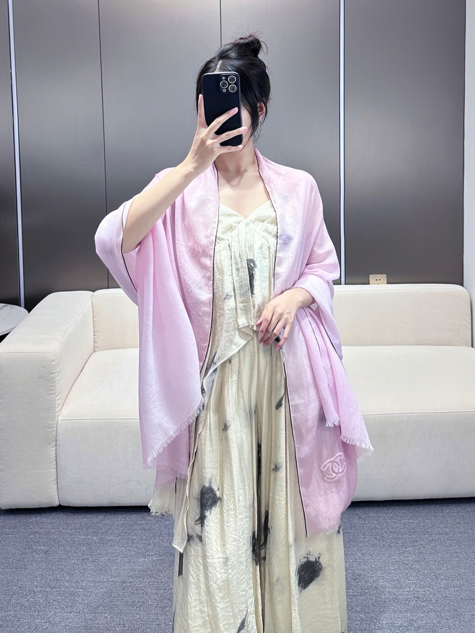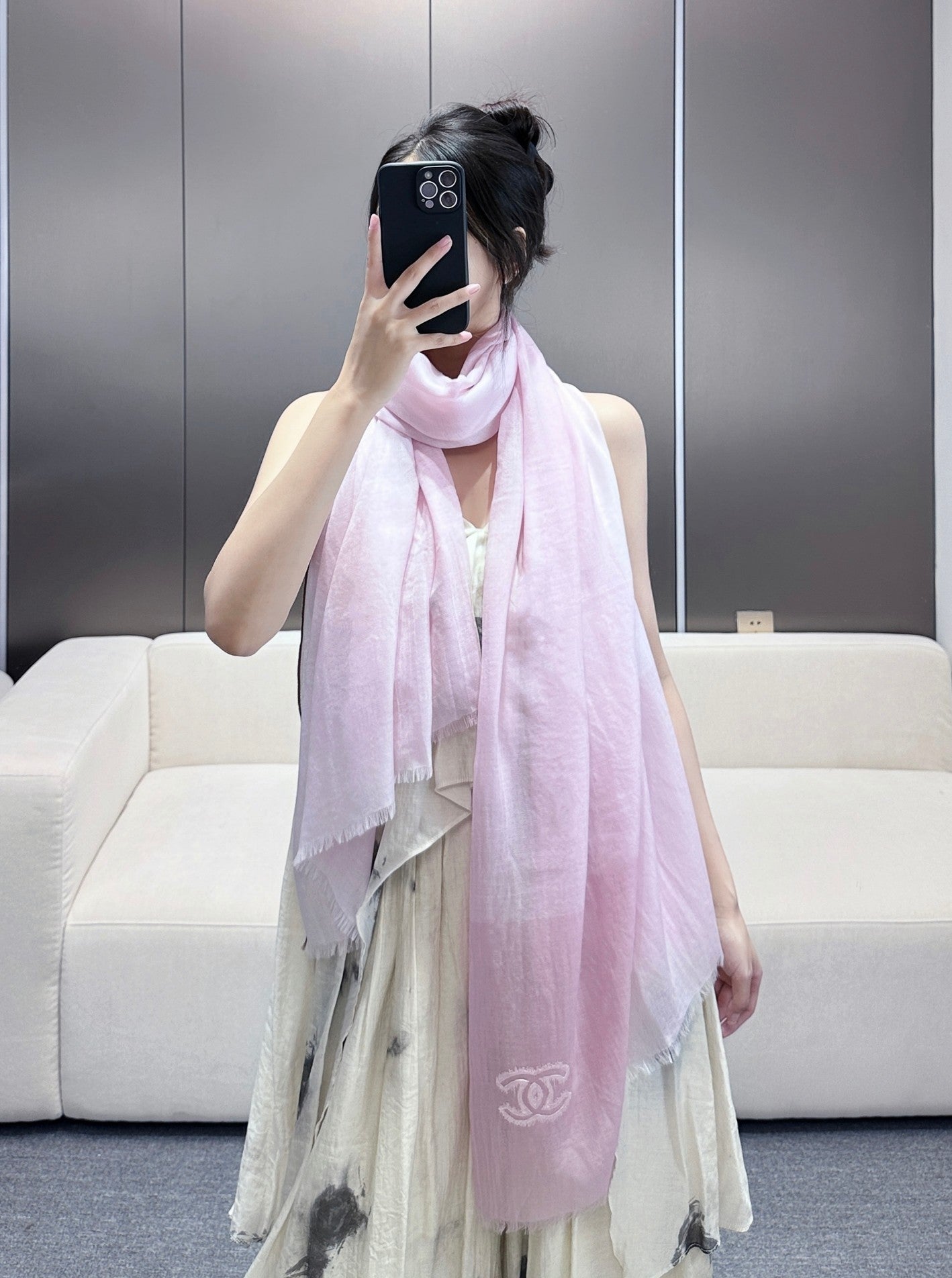 CC Scarf 200 CM In Light Pink Linen Fabric 418196
