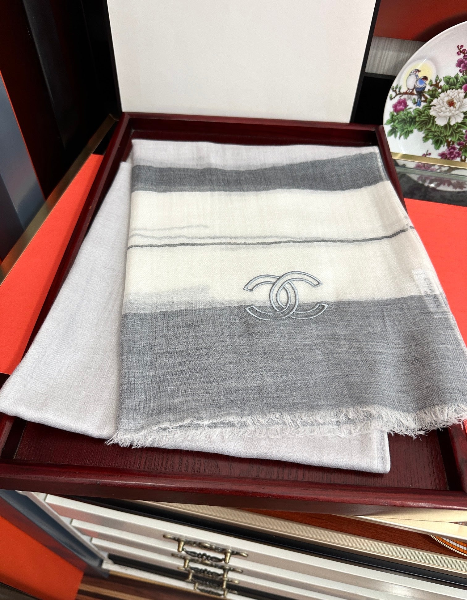 CC Scarf 200 CM In White Mix Light Grey Linen Fabric 423097