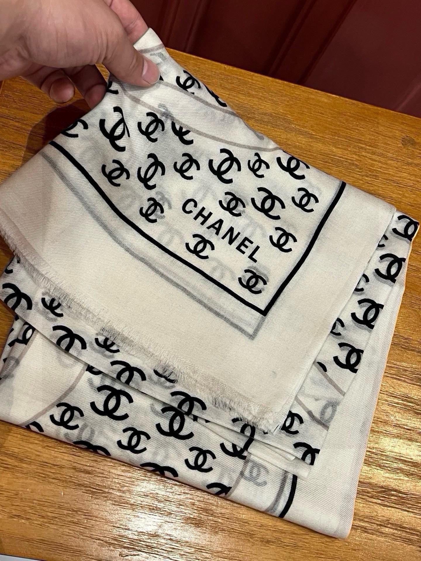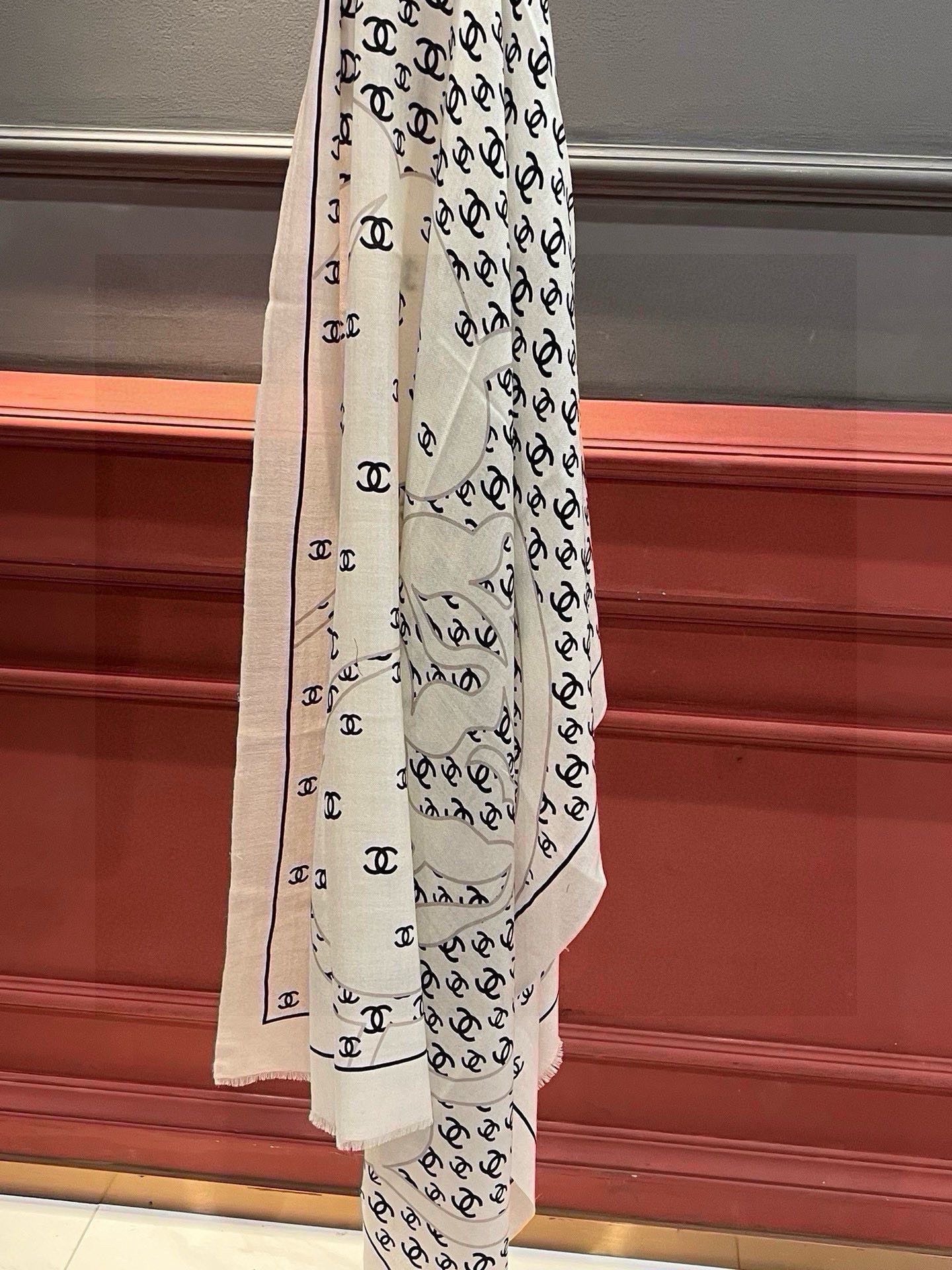 CC Scarf 200 CM In White With Black Logo Cashmere 363602